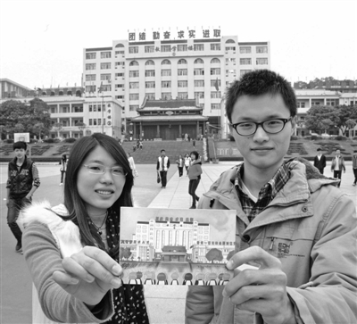 谈起创作过程,负责人小余告诉记者,他们其实之前没有绘画的基础,在这之前没有接触过关于手绘的任何东西。尽管不知道会遇到什么样的困难,但他们抱着试一试的心态朝着一致的目标努力起来了。几个月来,他们出策划书,自学软件,找资料,改了一遍又一遍,终于成功地设计了一组卡通漫画形式的“怀念母校”的明信片。小余说:“尽管我们手绘明信片的技术不够专业,但最宝贵的是这一份回忆,值得我们去怀念。”
