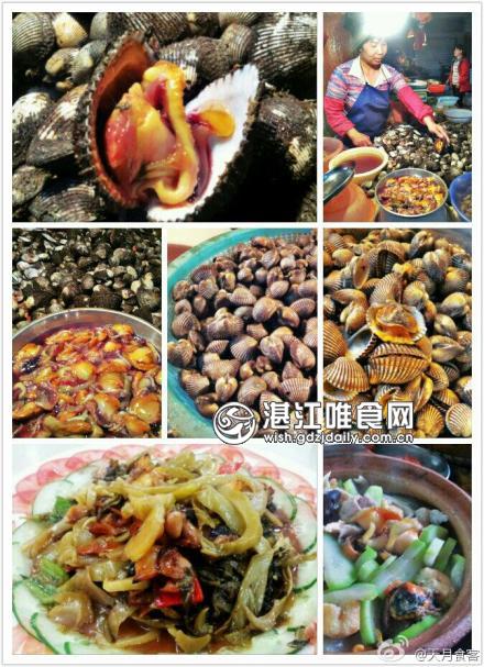 【湛江美食印象之马友】 马友,个人至爱的一种海鱼,肉质鲜嫩鱼香味浓,湛江人尤其钟爱,每年三到五月最肥美。鲜鱼常用来煲汁、砂锅油焗、油盐蒸、干煎…鱼干可蒸,可煮…曾在银海酒家吃过一种做法,一片鲜鱼夹一片鱼干几片五花肉垫底蒸,美其名曰“生死恋”,非常好吃,记忆犹新 【湛江美食印象之毛蚶】 又叫毛螺、红螺,外壳白色带毛绒绒的黑毛,与血蚶同类不同种,个大肉粗,常用来白灼、炒酸菜、炒韭菜、煲蒲瓜…肥美时啖啖肉的口感,令喜好贝类的人为之销魂 作者:黄治英 <89101112>