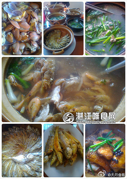 每次回湛江就为了这口销魂的“天然杂鱼汤”将各种各样杂鱼:博米、流唇、狗公、塌沙、三毛、斋鱼、鱿鱼、海沙虾...放砂锅中加姜葱清水煮汤,不用鸡精味精已清甜无比,连喝几大碗大叫过瘾!香煎沙尖、油焗流唇、煎焖马友、胡椒粒浸花甲、蚝仔煲韭菜、土鱿炒蒲瓜丝、砂锅带墨墨鱼仔、鸡汤杂菜煲