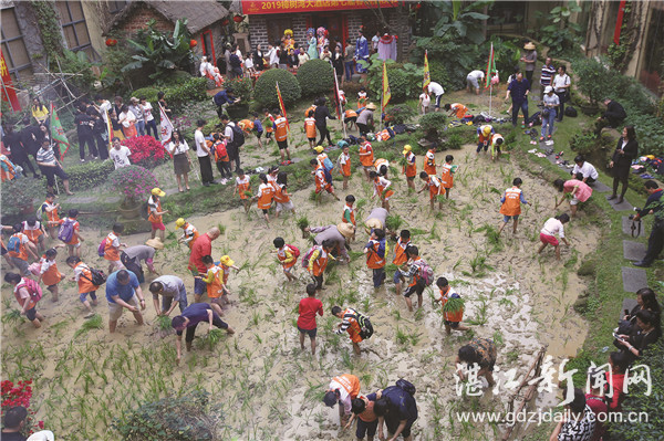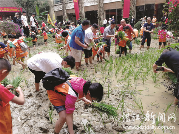 三月好时节,春暖大地,万物复苏。3月30日,雷州市樟树湾大酒店迎来第七届春耕插秧节。一亩三分地小溪环绕穿过,鱼儿蝌蚪戏水,弯弯曲曲的田埂,泥土芬香扑鼻而来。来自市八小、市二十一小、市二十八中及开发区二小等学校的湛江日报社约80名小记者纷至沓来,弯腰曲背,踩在软溜溜的田地上插起秧来,与文学大咖们体验劳动艰辛和意义,感受人与自然和谐共生。