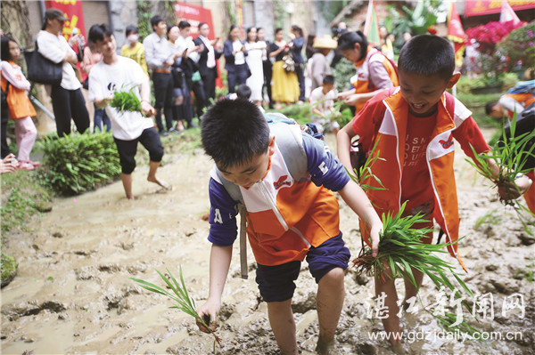 在小记者插秧互动中,陈宇感概道,看到你们很亲切,让我回忆起了童年,天天在土地里跟着父母在插秧,你们现在既能写作,又能插秧,真是棒极了。在插秧过程中,小记者们虽然很多是第一次下田插秧,但是脚一踩下去,一把秧苗,一个弯腰下去,把秧插得有模有样。
