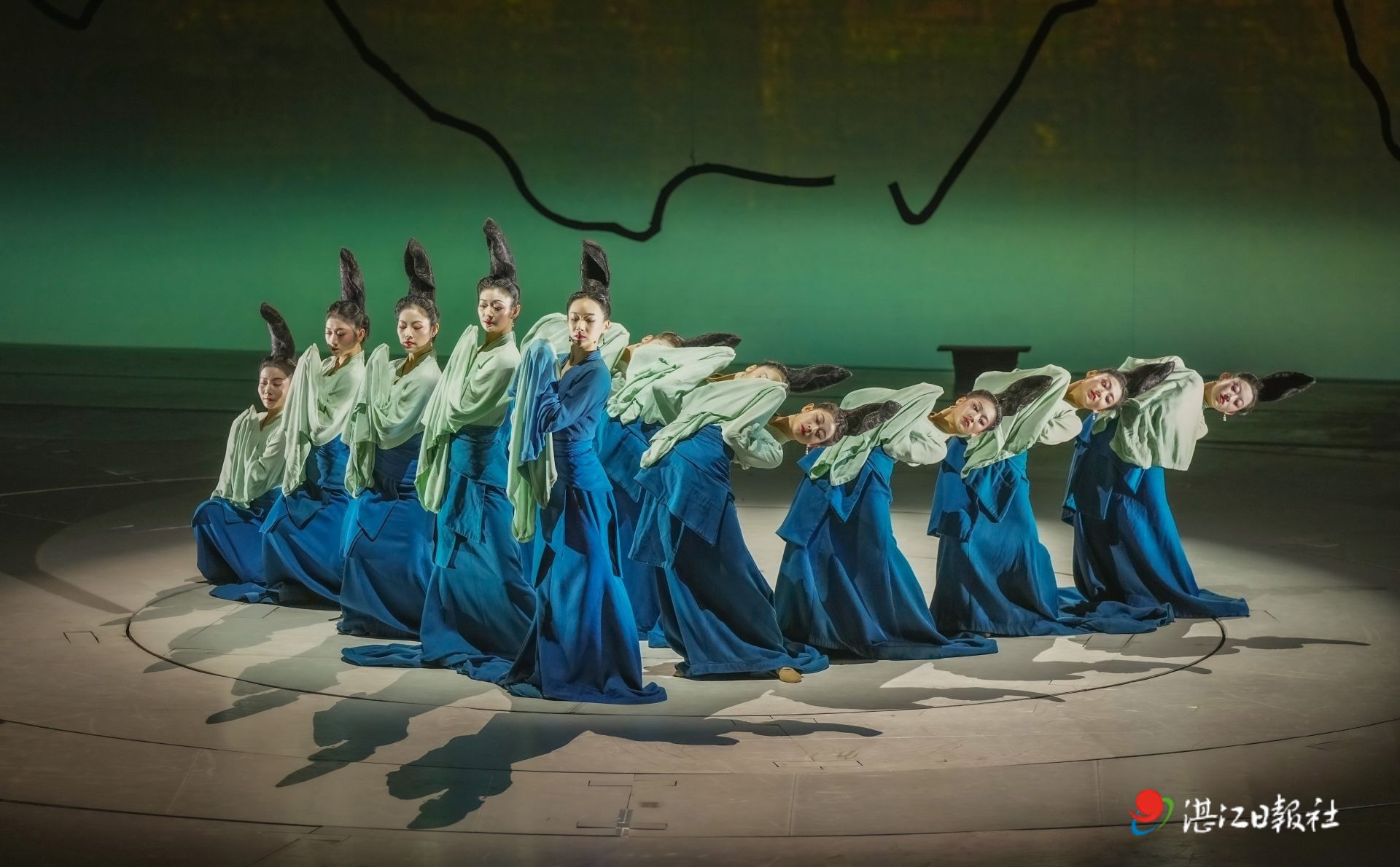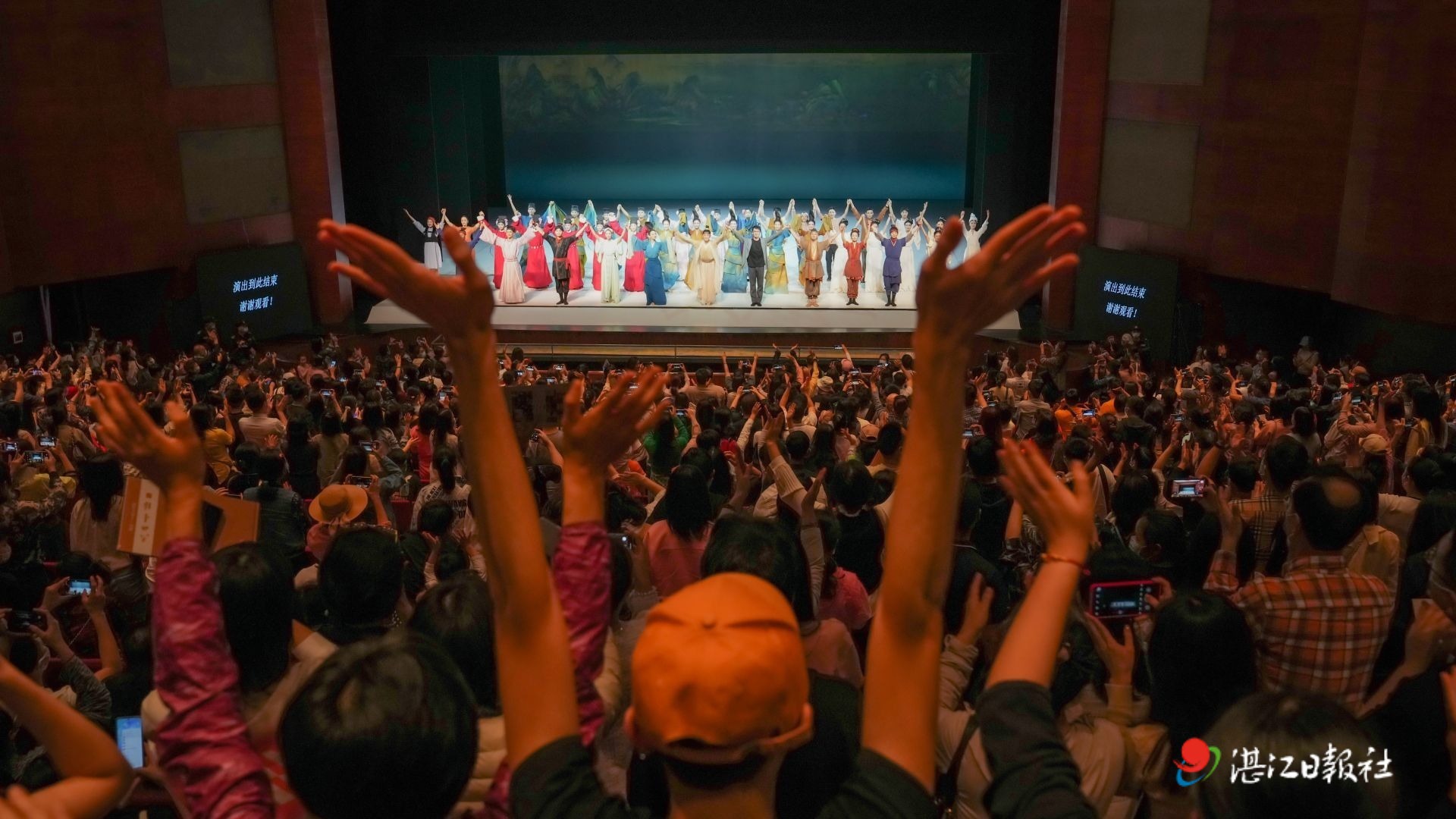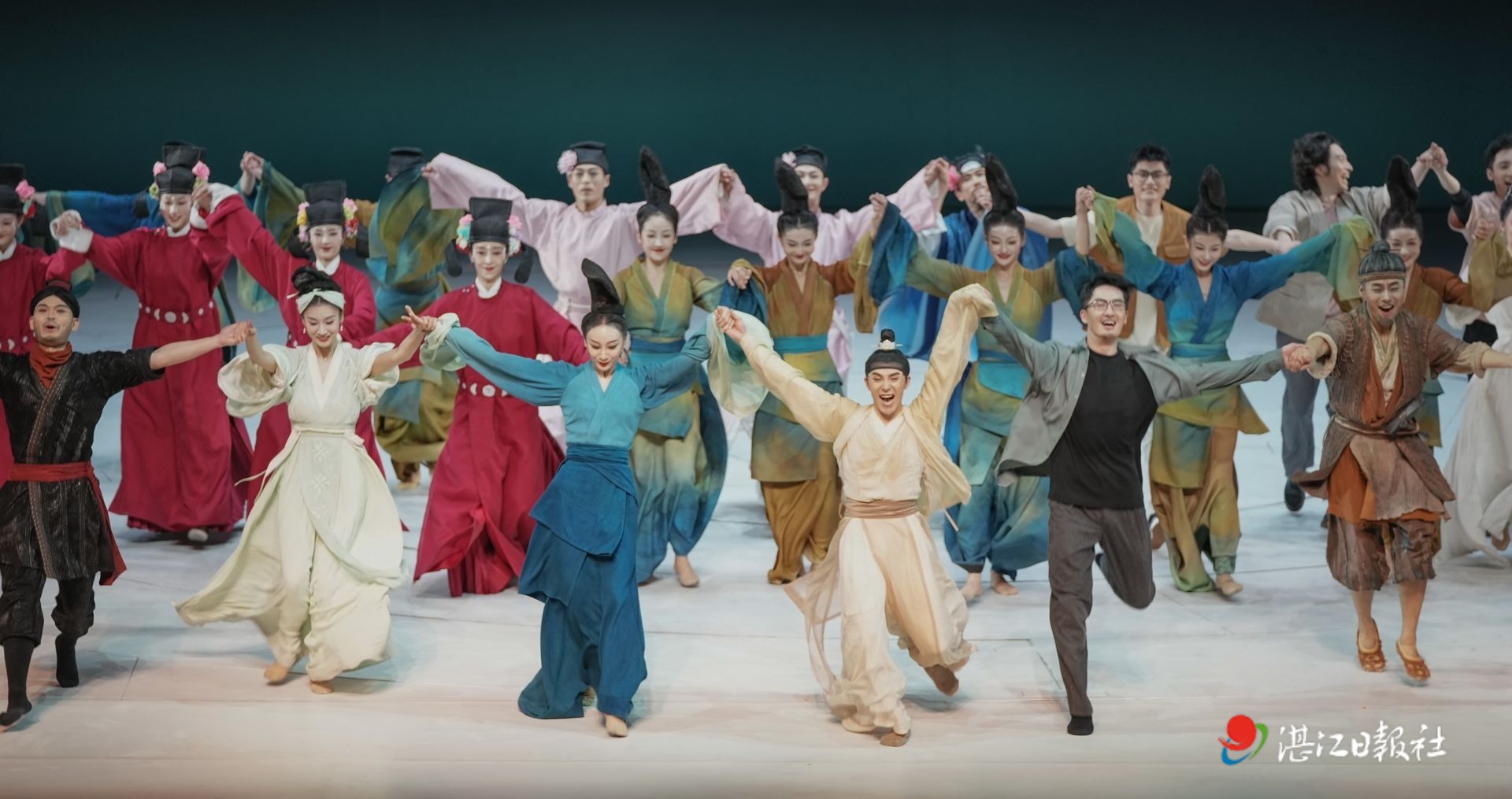 - 2022年3月3日晚,舞蹈诗剧《只此青绿》二轮全国巡演在海口的首场演出结束后,演职人员激情谢幕。