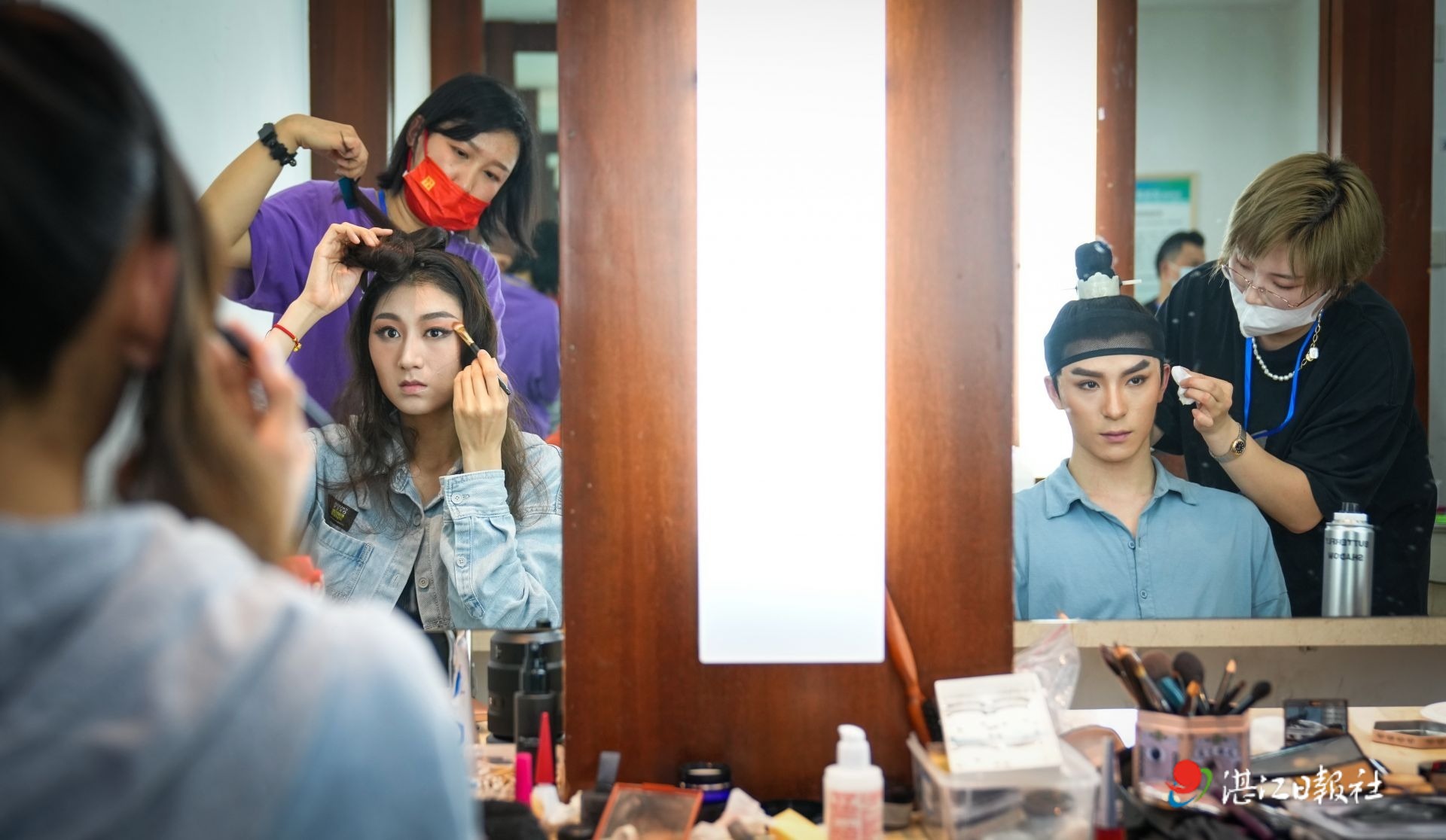 - 2022年3月3日,演出前,《只此青绿》的演员在化妆间上妆。