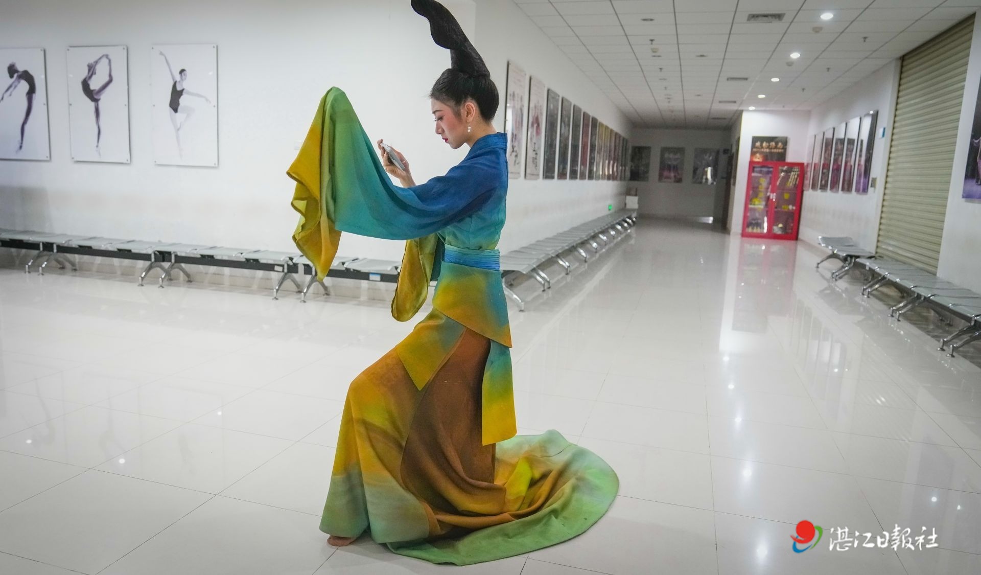 - 2022年3月5日,曾小玲用手机播放视频练习动作,舞蹈让她穿越到宋代,和角色融为一体。