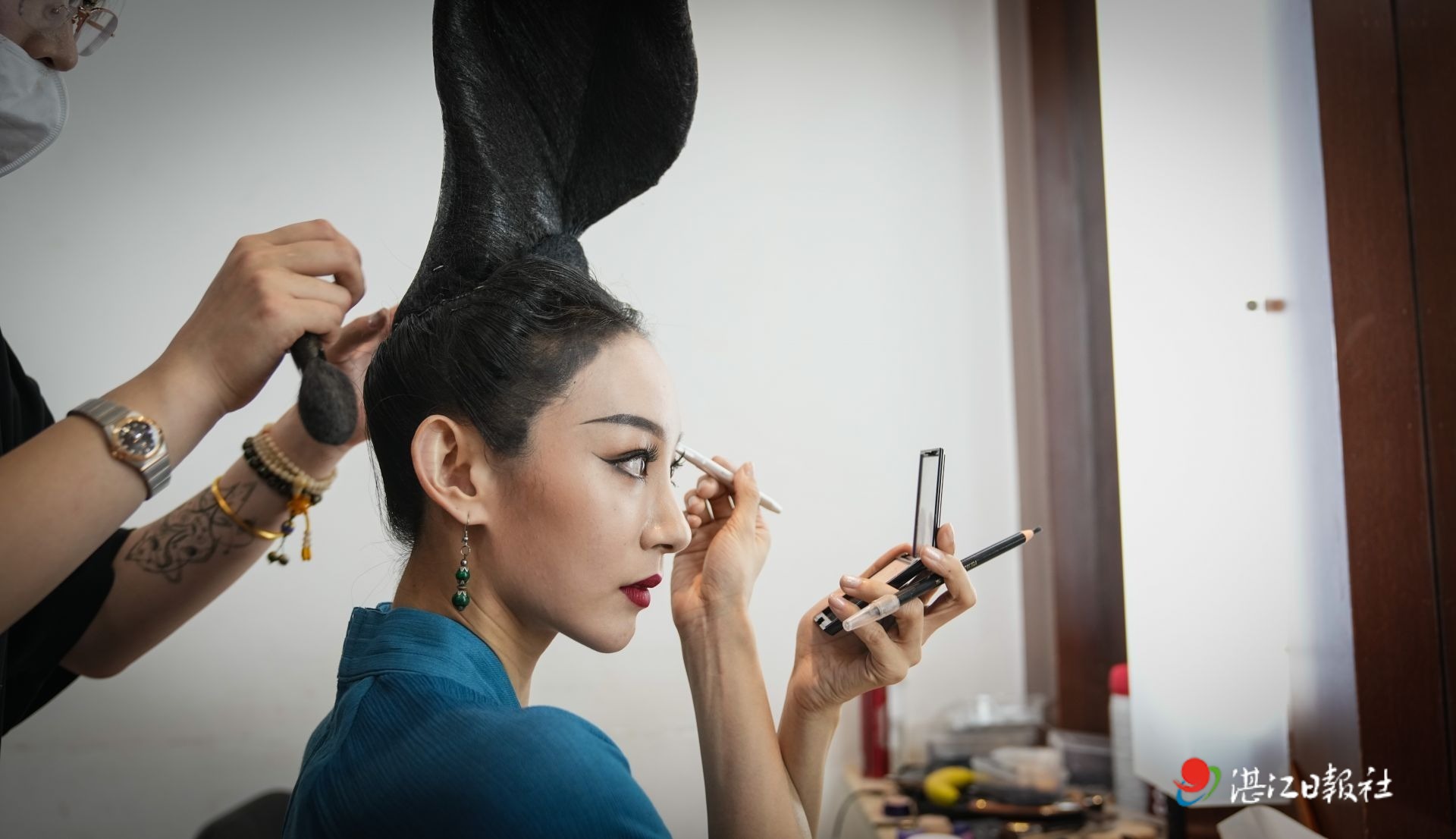 - 2022年3月2日,舞蹈诗剧《只此青绿》在海南歌剧院首演前进行排练。