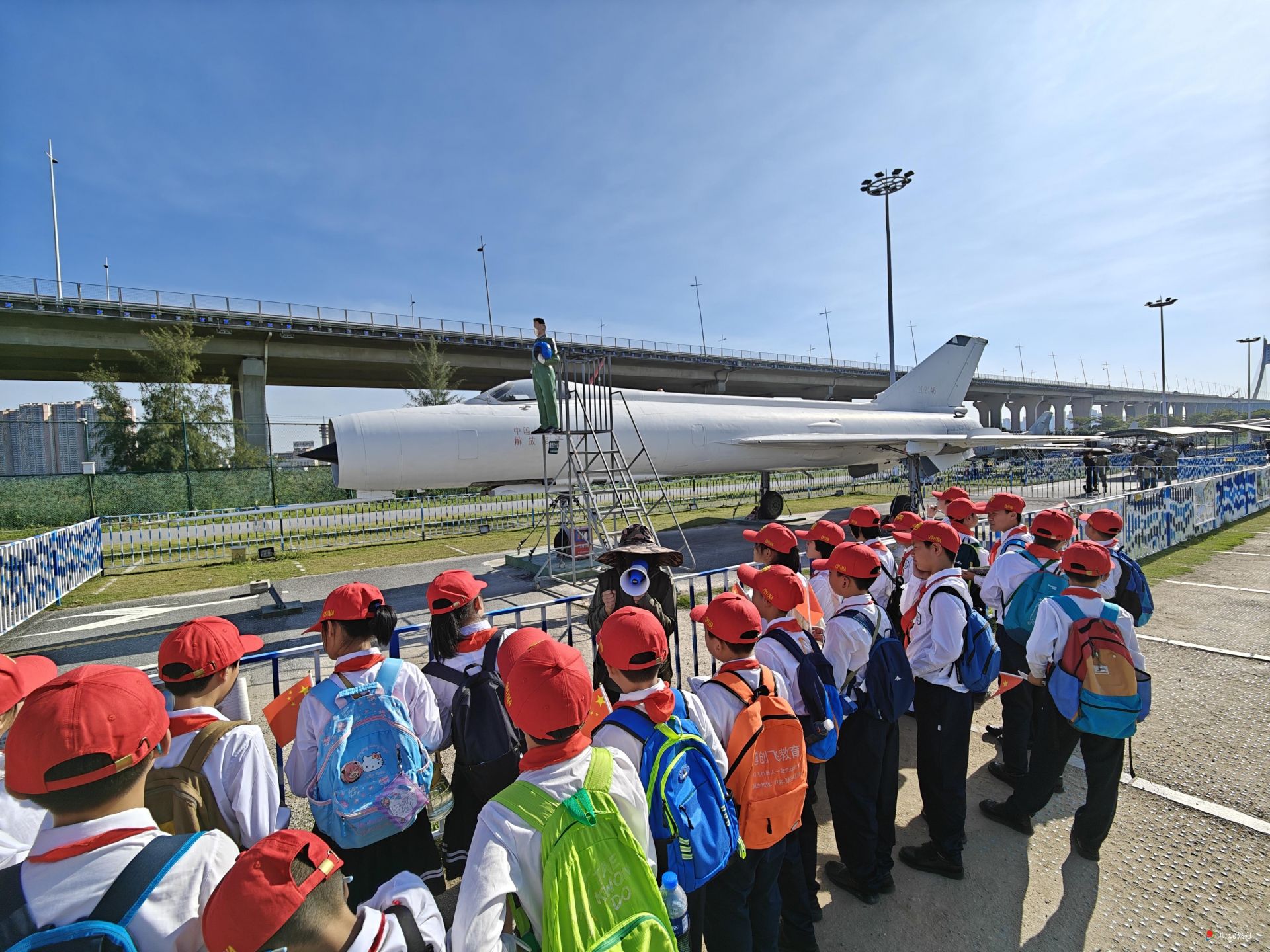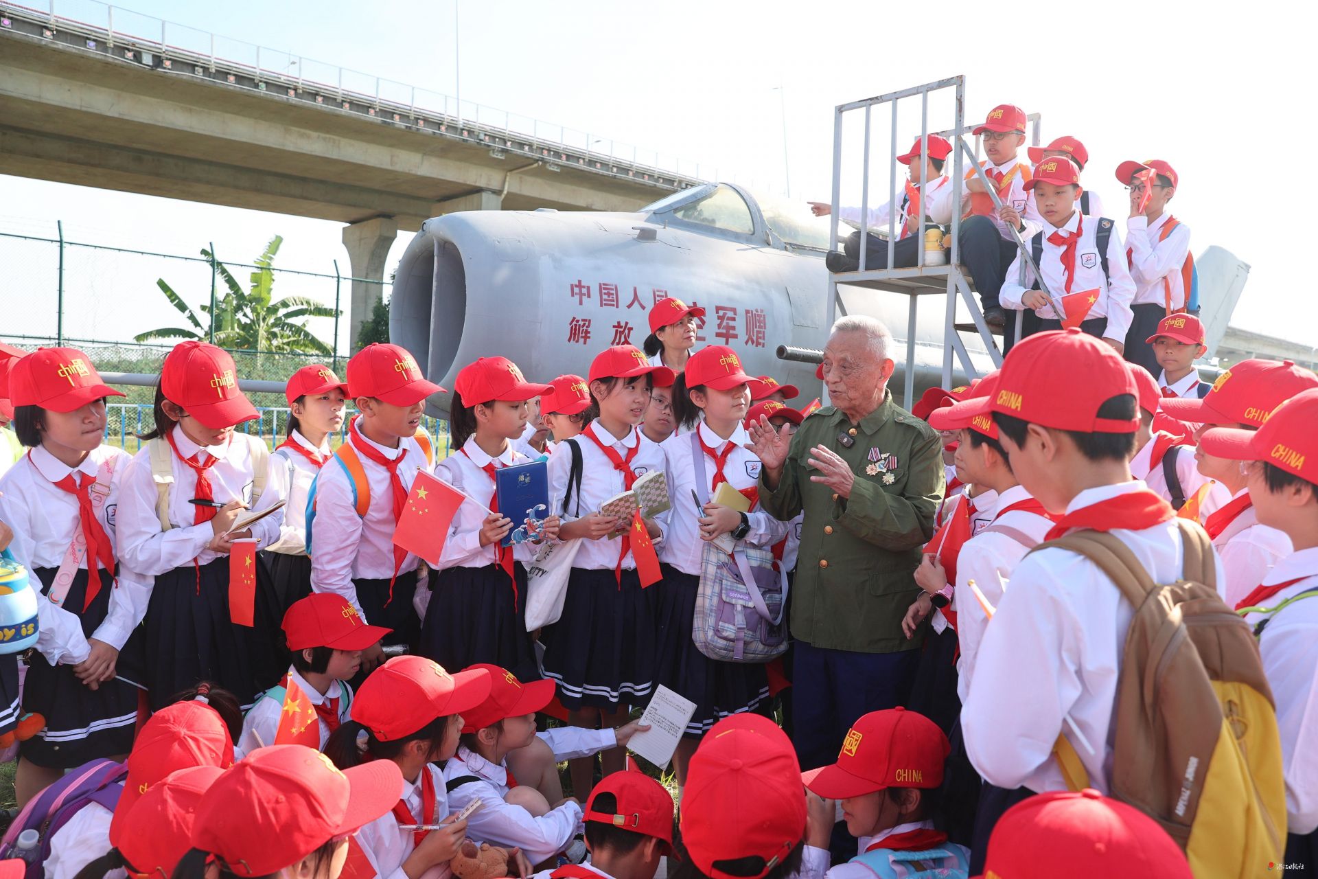 - 在湛江军事文化博览园,一群满怀好奇的学生紧紧围坐在“特级飞行员”田欣民的身旁。他们的目光中闪烁着对英雄事迹的无限向往,兴致勃勃地聆听着田老讲述战斗故事,分享军旅感悟。