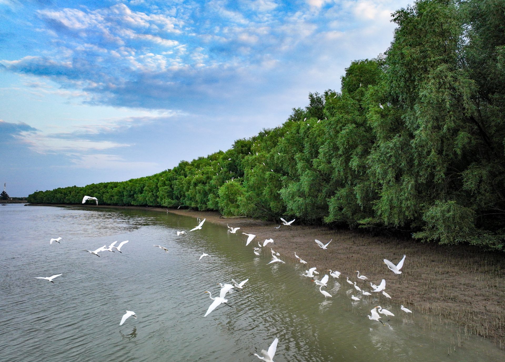 三五成群的鹭鸟栖息在坡头镇塘尾围红树林。图片来源坡头发布