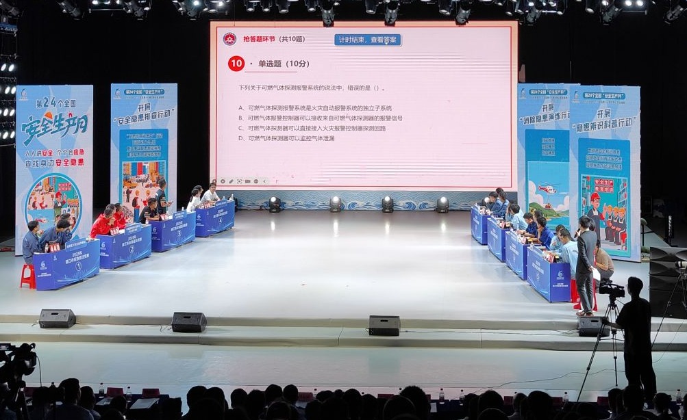 本次竞赛内容丰富,涵盖《中华人民共和国安全生产法》《突发事件应对法》《消防法》等多部与应急管理紧密相关的法律法规,以及各类应急救援知识。比赛分为必答题、查找隐患题、抢答题、速答题、风险题五个环节,各环节环环相扣,紧张激烈。