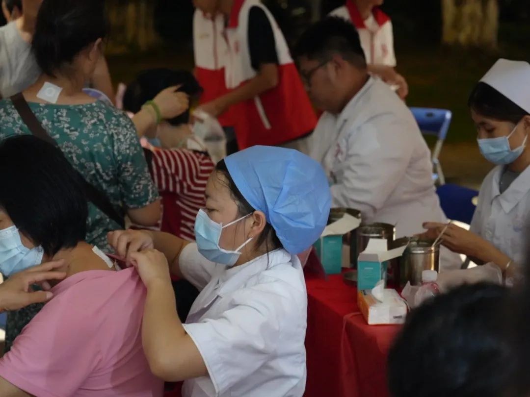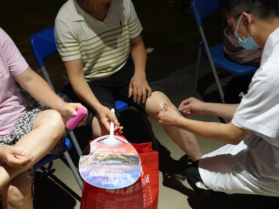免费血糖血压检测服务台中,医护人员耐心记录数据并给出健康建议;耳穴贴敷摊位前,家长带着孩子体验中医特色疗法;爱心凉茶摊每日供应数百杯祛湿茶,为群众送上清凉解暑的饮品。