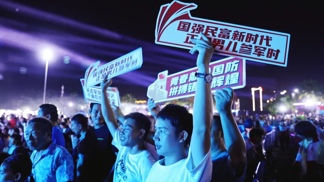 音乐会现场,激昂的《强军战歌》响彻沙滩上空。以铿锵有力的节奏、振奋人心的歌词,瞬间点燃现场气氛。许多观众不由自主地跟着旋律挥舞着手中的征兵宣传牌、齐声合唱,在歌声中感受人民军队的豪迈与担当。