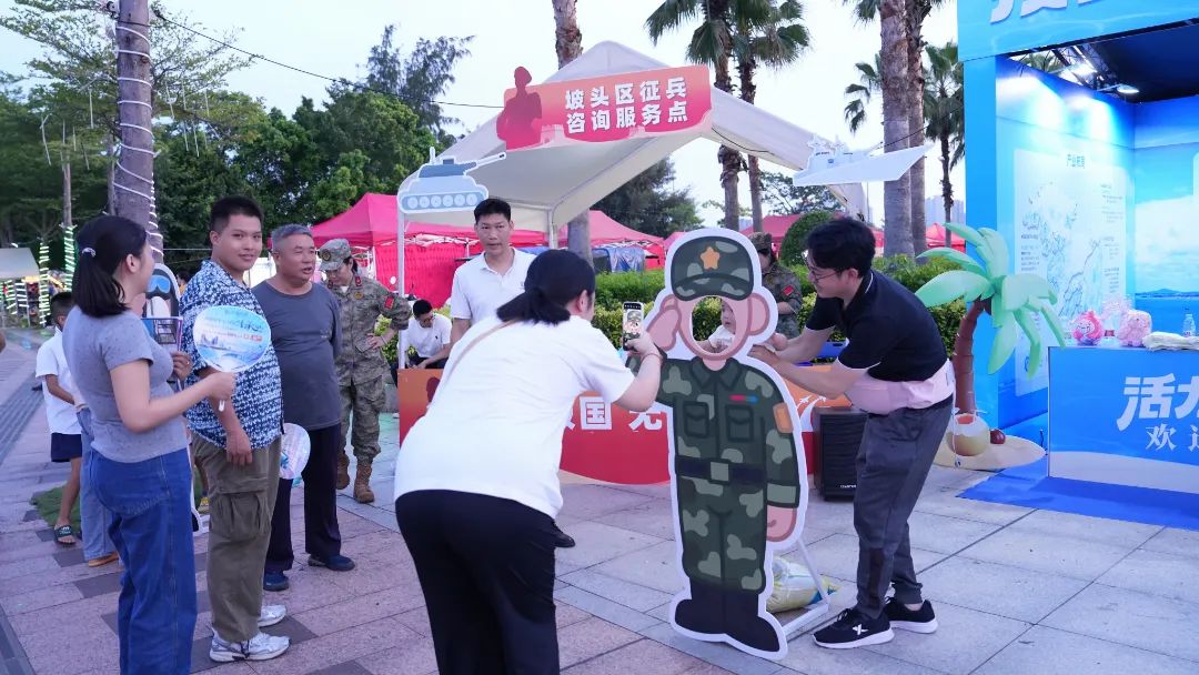 7月4日至6日,户外沙滩音乐会在坡头区奥体中心五环广场火热开演。舞台上,歌手们用歌声点燃激情;舞台旁,一个别开生面的征兵宣传摊位同样吸引着许多群众驻足参与。