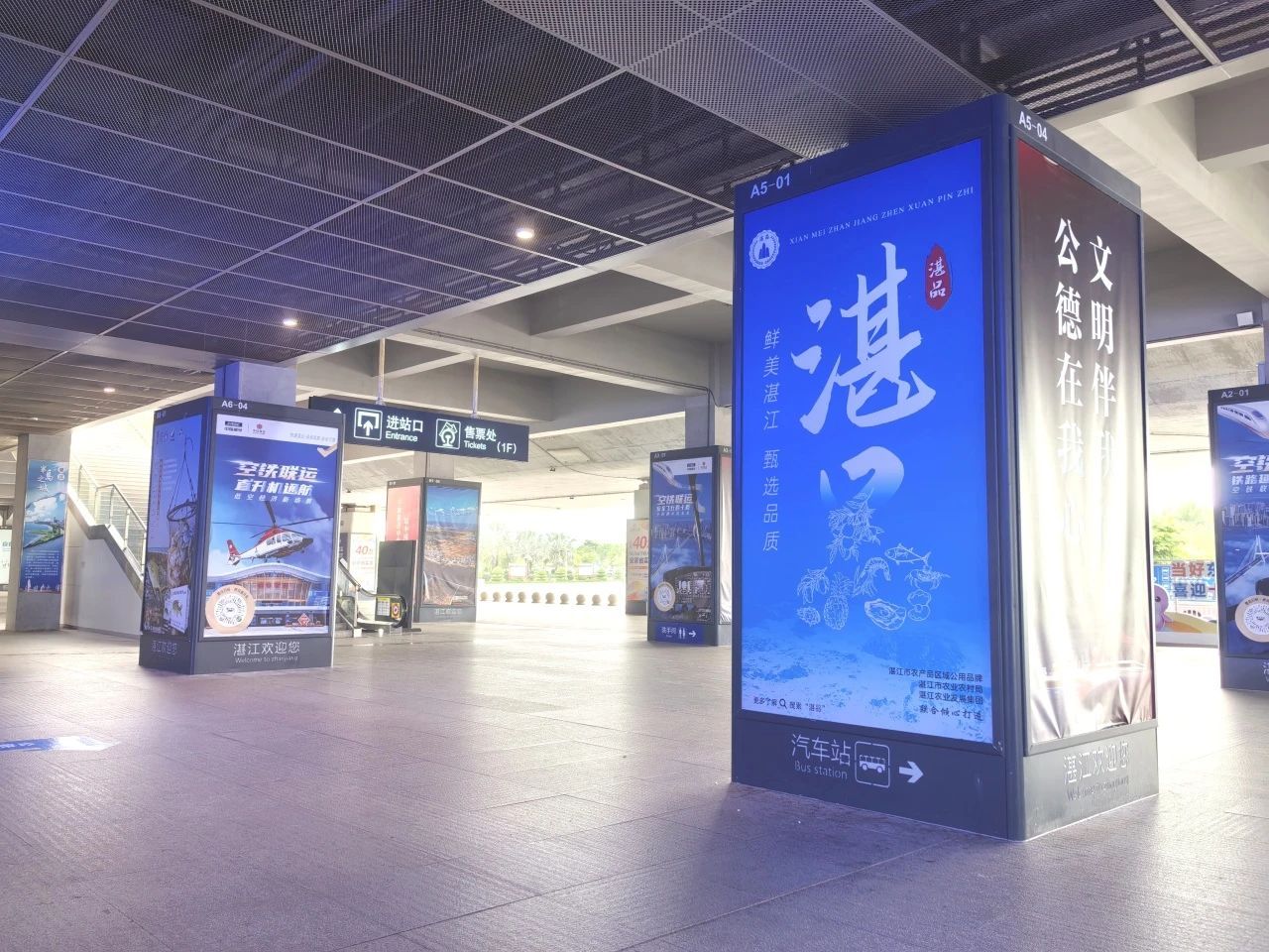 紧抓暑假客流高峰黄金期,在湛江西站候车厅滚动播放“湛品”宣传片,在出站口设置立柱广告,并在12306咨询台投放“湛品”宣传手册,精准触达商旅人群及探亲旅游人群;在市委党校食堂及校园区域设立“湛品”宣传展示区,覆盖参训干部群体;同时,在金沙湾、湛江会展中心等核心商圈LED大屏高频次播放“湛品”宣传片,并在金沙湾区域打造“湛品”主题公交站,将“湛品”品牌形象深度融入城市公共空间,切实提升“湛品”在本土及外地旅客中的认知度。