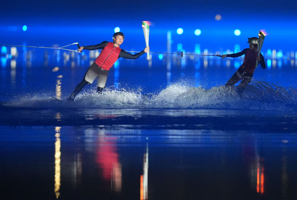 成都世运会开幕式上,中国滑水运动员徐露与同伴阿卢晓波在摩托艇的牵引下,带着火炬疾驰于秦皇湖上,共同点燃了位于湖心的主火炬。这一幕让37岁的中国滑水选手张伟心潮澎湃。“这对进一步推广滑水运动意义重大。”他说,“开幕式后很多朋友找我了解这个项目,都想尝试一下。”