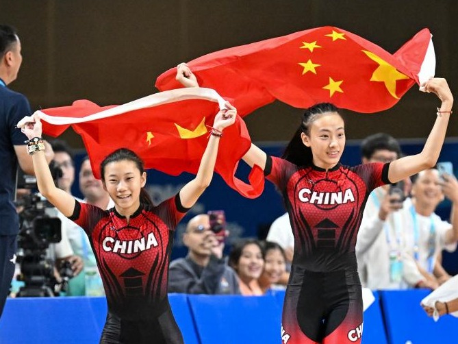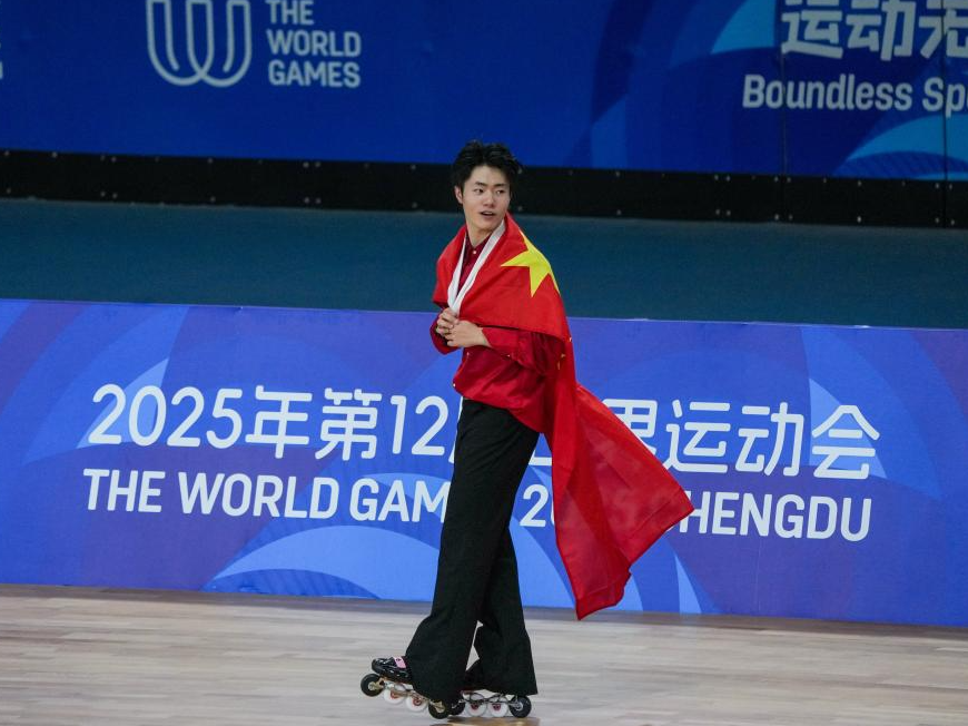 新华社成都8月17日电 在17日结束的成都世运会自由式轮滑男子、女子花式绕桩比赛中,中国队收获两枚金牌,以3金3银2铜的总成绩在该项目中独占鳌头。