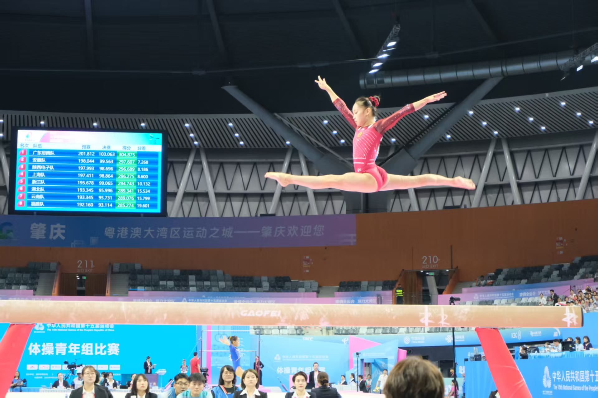 9月10日晚,第十五届全国运动会体操青年组比赛女子全能项目决赛在肇庆进行。其中,代表广东队出战的湛江遂溪籍运动员、14岁体操新星黄紫艺获得铜牌。