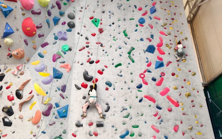 那天晚上,我和妈妈骑车来到十里画廊,路过金猫山攀岩基地时,被那儿的气氛吸引住了:“加油”声此起彼伏,那儿有很多孩子在攀岩!