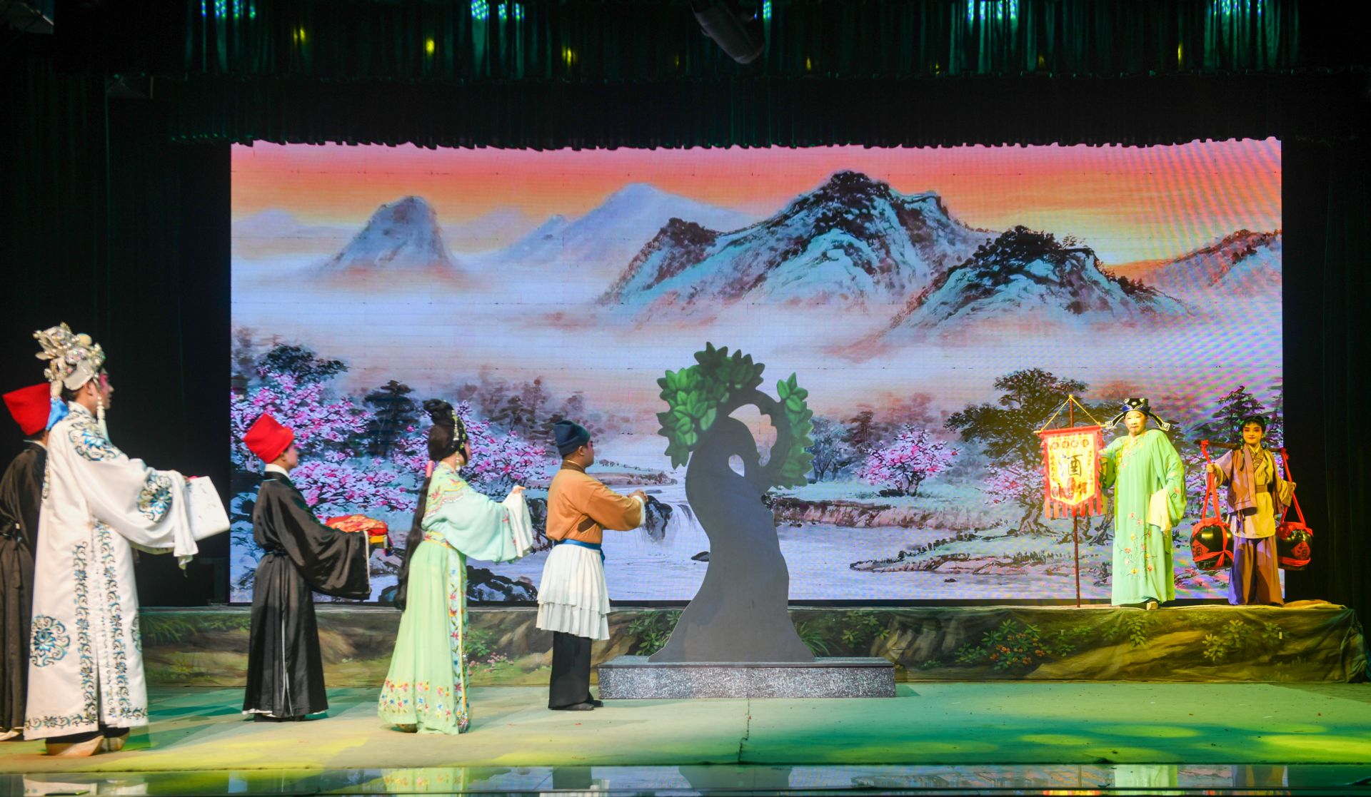 咚咚镲,咚咚镲……9月26日,在雷州市人民会堂,伴随着阵阵锣鼓的铿锵敲击,汇成激荡视听的高亢乐曲响起,生、旦、净、末、丑等角色轮番上场,人人紧扣各自的身份唱、念、做、打,把一出出雷剧的精髓演绎得淋漓尽致。
