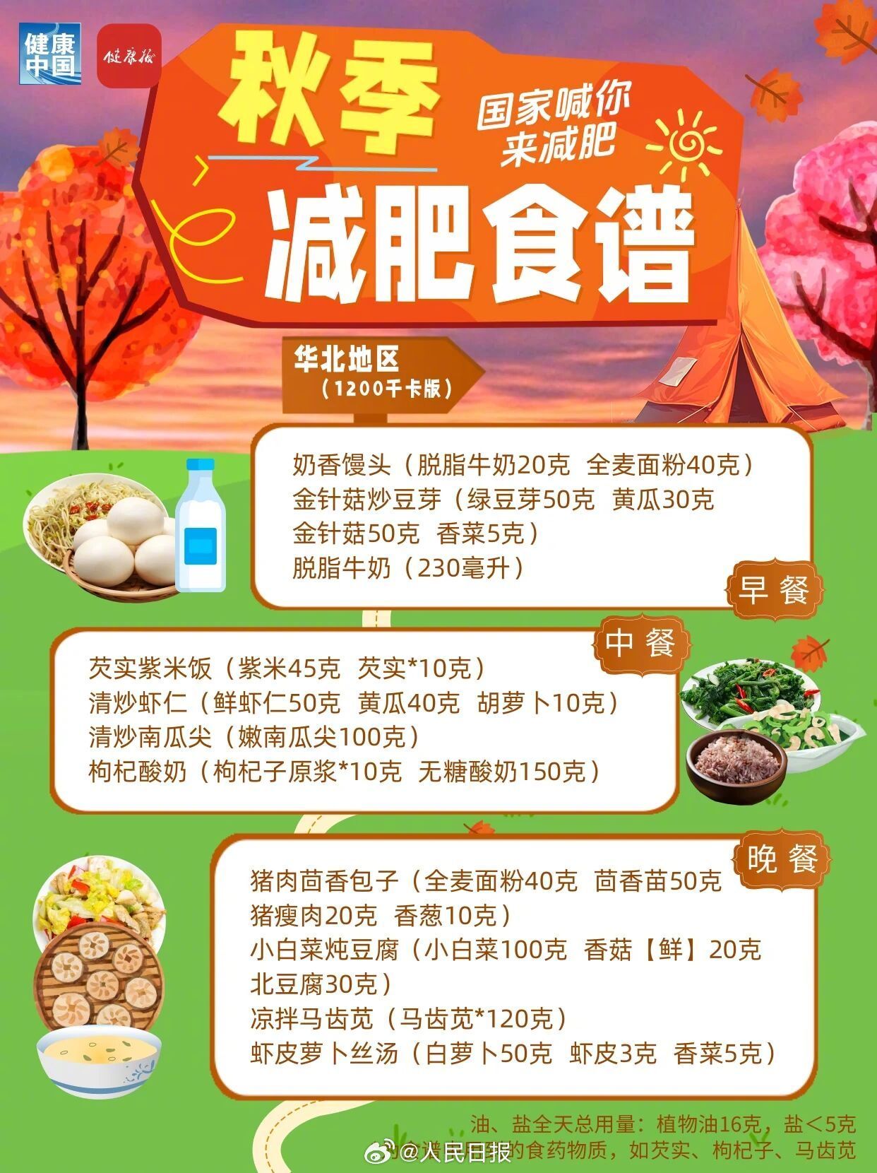 针对不同地区,秋季科学减重,应该怎么吃?这份专属食谱请收好↓↓目前已有东北、西北、华北、华东地区版本,更多地区陆续更新中!