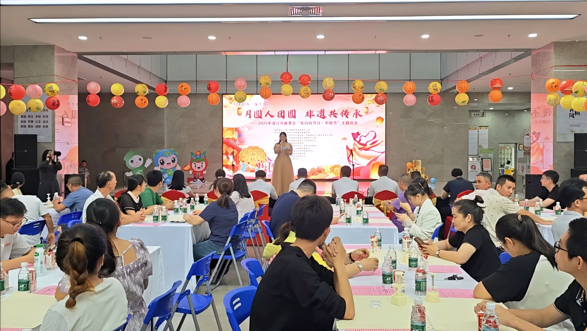 9月28日,创建助力“百千万”,“月圆人团圆 非遗共传承”——2025年湛江市“我们的节日·中秋节”主题活动在麻章区新时代文明实践中心举办。活动通过文艺展演、非遗推介和制作月饼体验等形式,在浓厚的节日氛围中弘扬中华优秀传统文化,为市民带来充满传统文化韵味的体验。