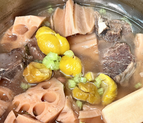 整道菜肴咸中带甜,酱香浓郁,口感丰富。莲藕的绵中带脆,板栗的粉糯香甜,与排骨的酥烂咸香交织融合。它通过“焖”这一烹饪方式,将食材的精华与滋养之性尽数融入浓厚的汤汁之中,既能润肺燥,又能暖脾胃,还能益肾气,三者兼顾,相得益彰。