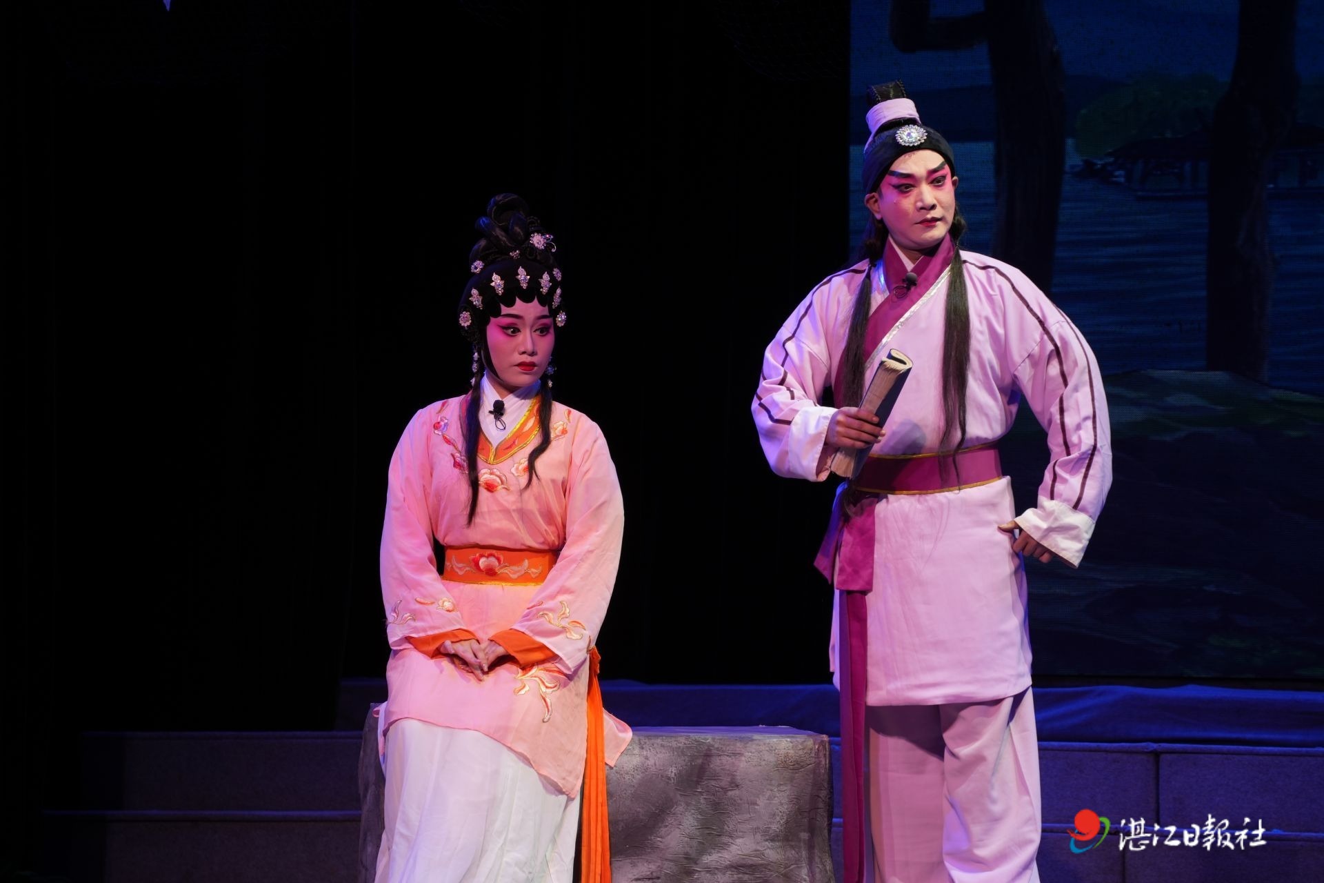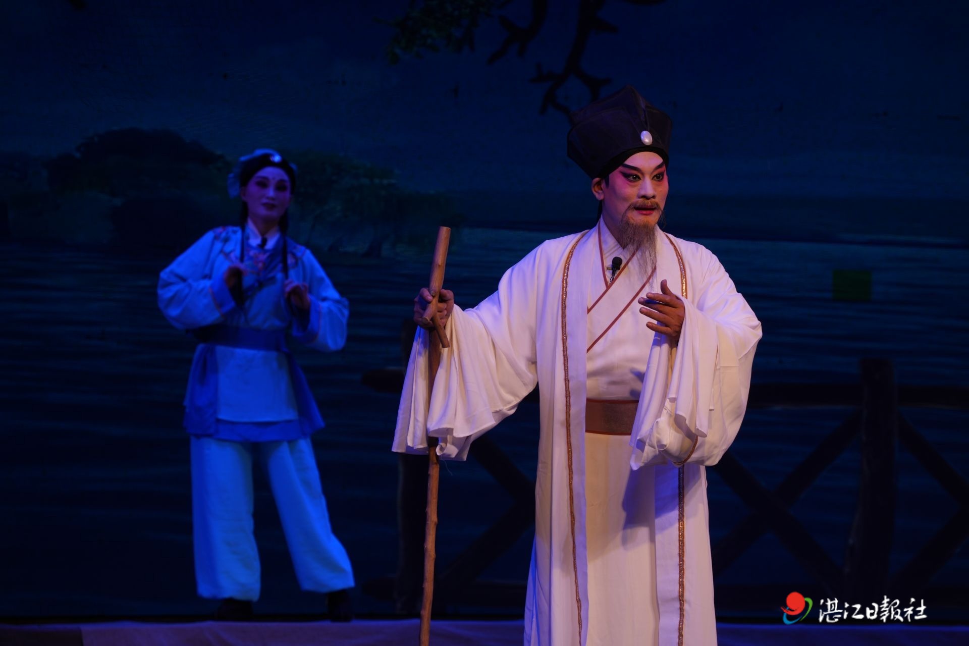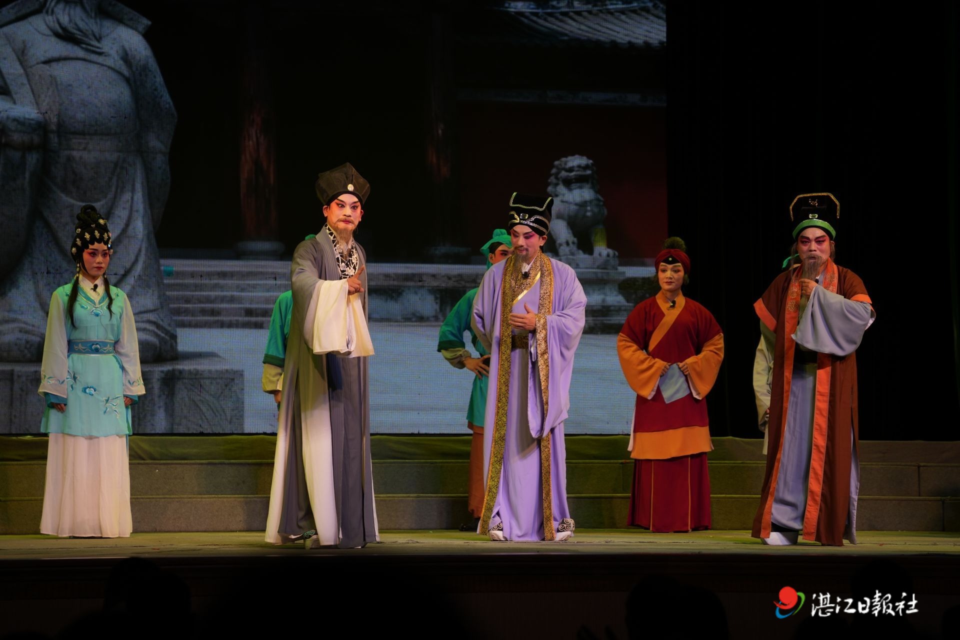 演出当晚,随着大幕拉开,穿越千年的历史画卷徐徐展开。接着,“咚咚镲、咚咚镲……”的铿锵锣鼓声旋即穿透大厅。在依次有序推出的“题匾赠画”“讲学赠书”“义释石保”“赠银济困”“董毕逼问”“兄妹相认”及“百姓送行”“阿婆炖鸡”等情节中,生、旦、净、末、丑等各行当演员轮番上场。人人娴熟走位、精准对戏,通过雷剧的唱念做打将艺术魅力尽情展示。特别是其中的“题匾赠画”“讲学赠书”等剧情,既有历史真实,又富含戏剧张力,引发观众掌声如雷喝彩不断,人们深为剧本所塑造出有血有肉的历史人物,以及由此映照出雷州人民淳朴善良、重情重义的地域性格所打动。