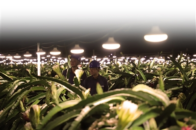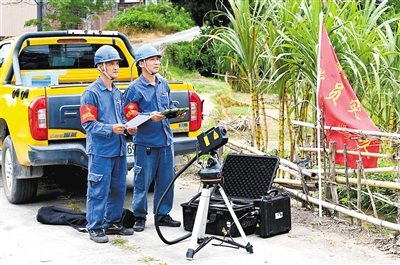 南方电网广东湛江遂溪供电局配网运维人员在火龙果种植园为用户检查用电安全。
