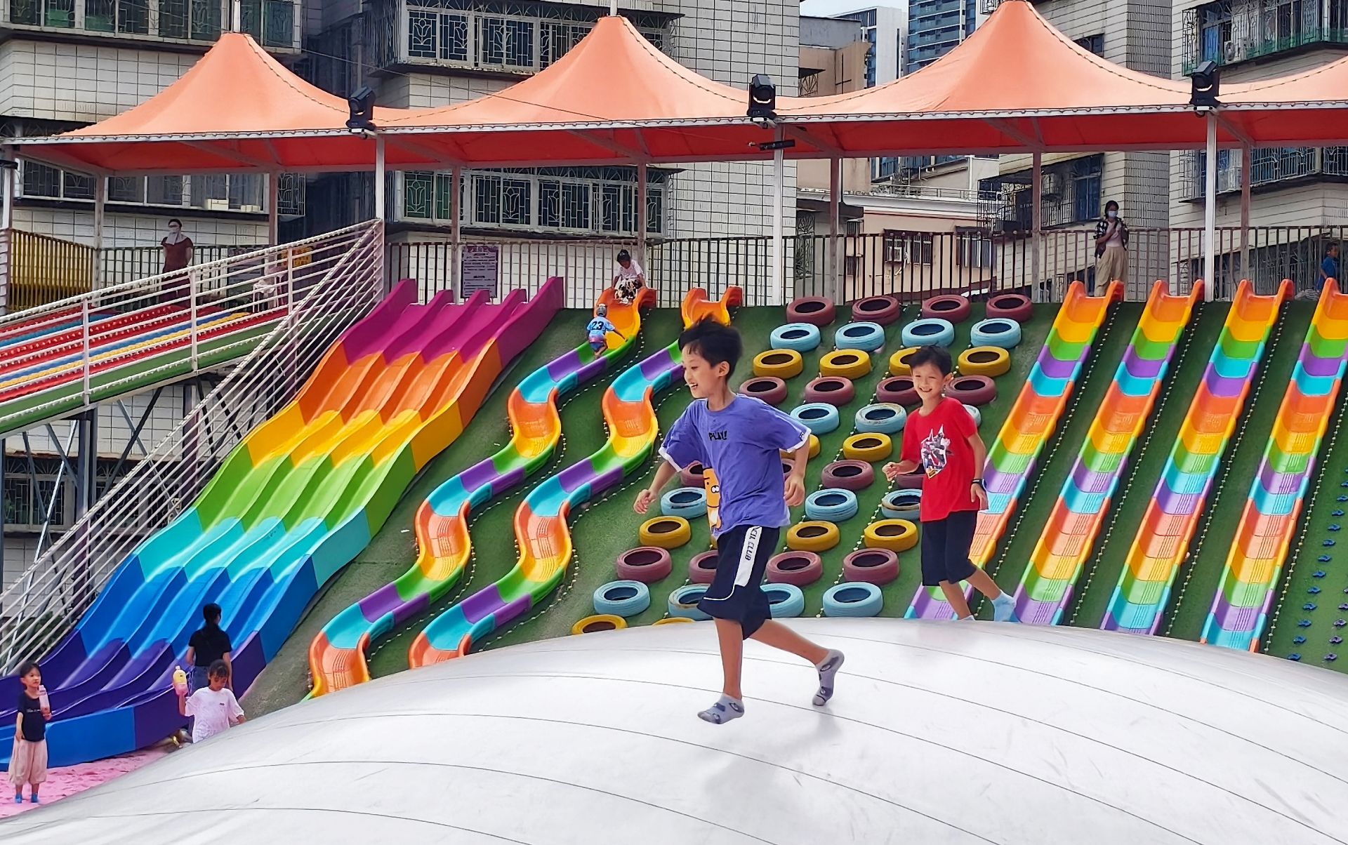 乐园内彩色区域童趣十足,旋转设施、探险攀爬架、缤纷滑草等项目,让孩子们在运动中尽情释放活力。学生们在户外肆意奔跑、探索,享受难得的运动时光;家长们则青睐这种健康阳光的方式,希望孩子远离电子设备,在充足户外活动中强健体魄、亲近自然。