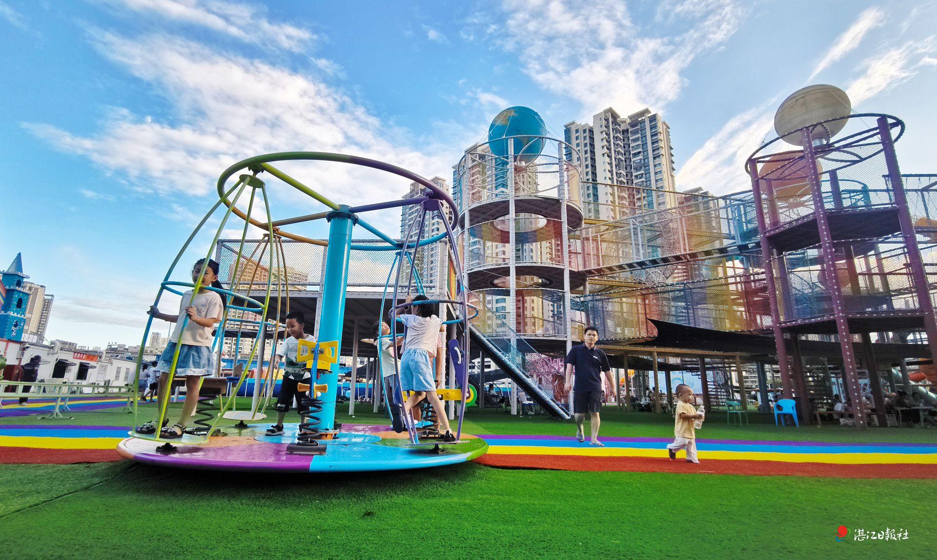 国庆期间,湛江市赤坎区金沙湾户外无动力乐园人气高涨,成为亲子家庭运动休闲的热门之选。