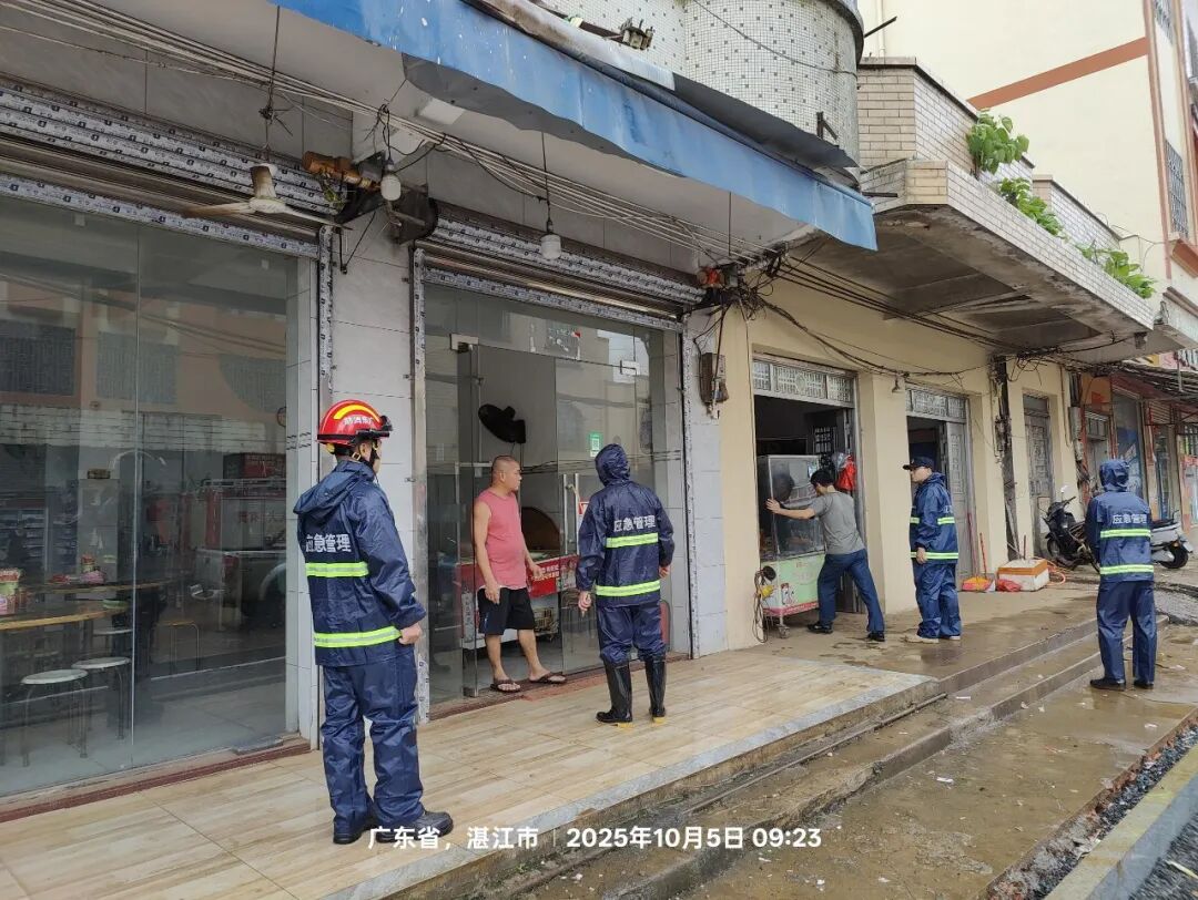 雷州市各镇(街)干部积极巡查群众转移及隐患排查。
