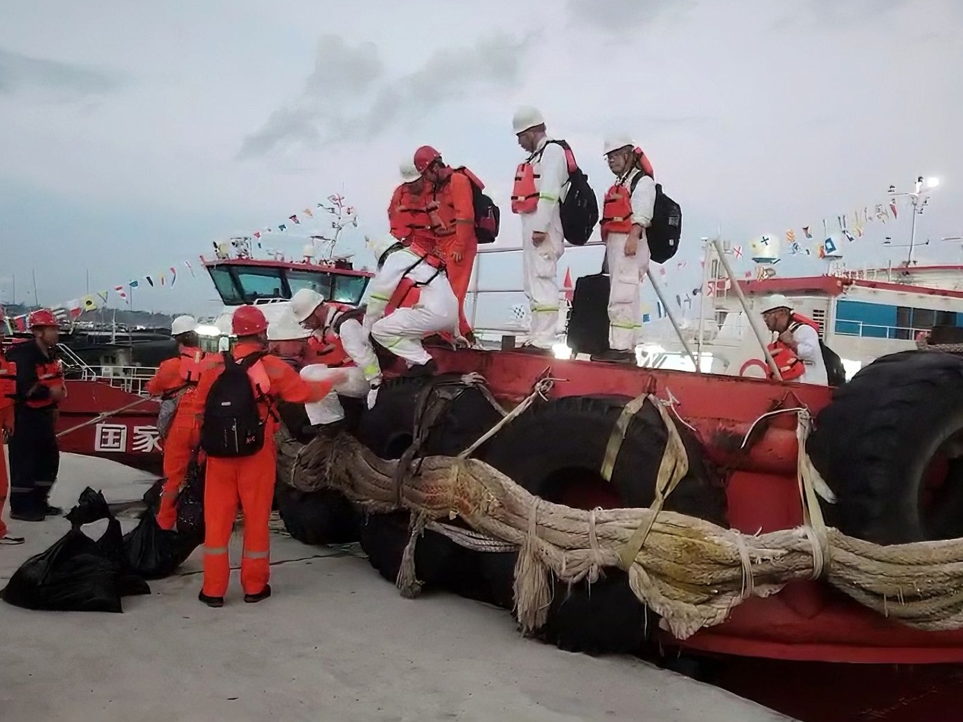 在养殖装备方面,“恒燚1号”养殖平台工作人员对该平台网衣附着物进行了全面清理,撤除了内部渔网、饲料网,并对损坏网衣进行修补,减轻网箱负荷。门、窗、舱口等所有开口均已封闭,并对活动物件如舱门、百叶窗、吊钩、太阳能板、灭火器、救生圈等进行加固。在多次认真检查确认防台风措施落实到位后,平台工作人员立即执行撤离命令,离开平台回到岸上。工作群里,湛江湾实验室的养殖装备研发设计人员通过智慧渔业指挥中心远程实时关注平台情况,并每间隔一小时通报平台状态和所在区域气象和水文情况,为进一步防台风决策提供信息支撑。