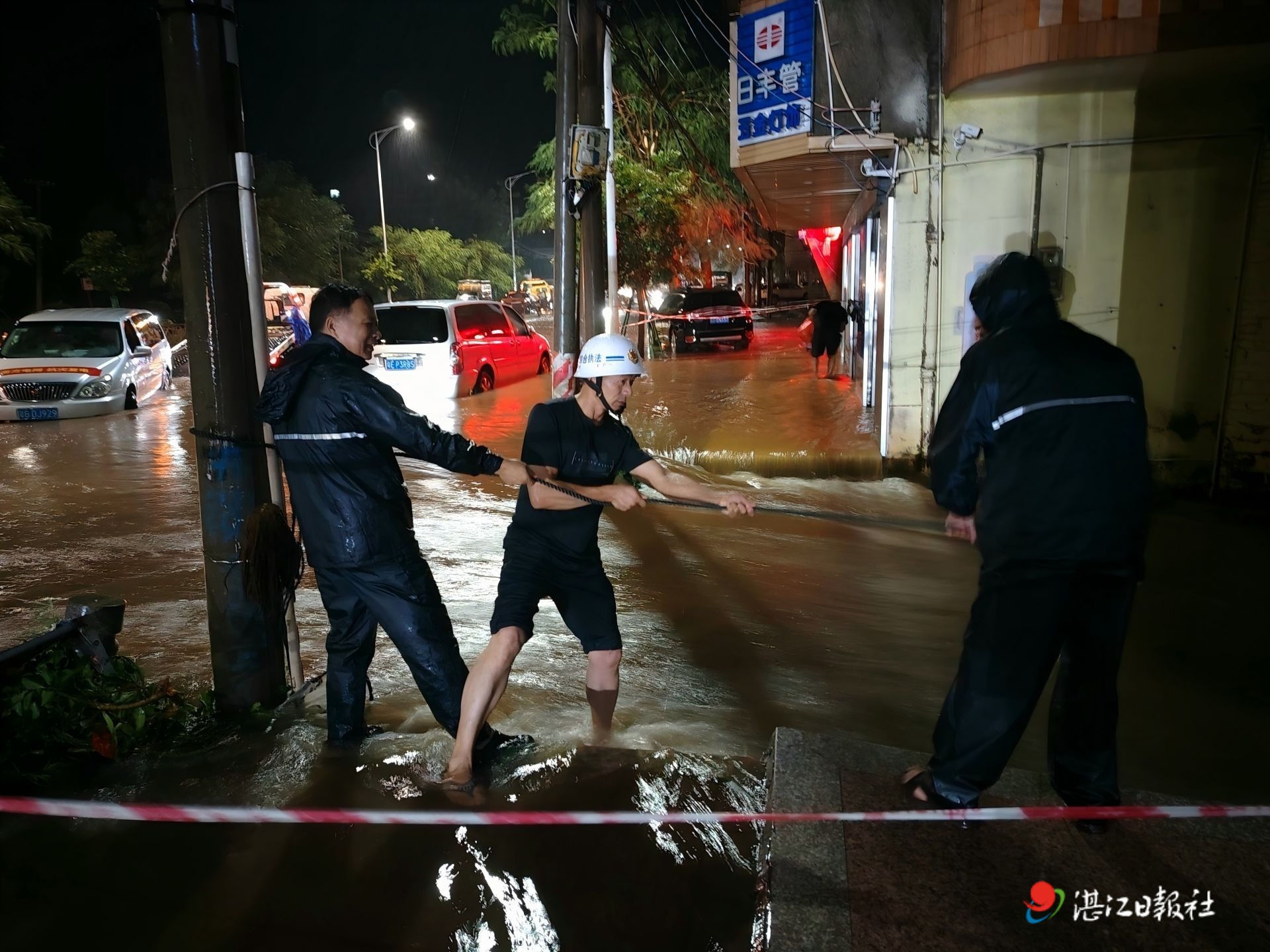 清障现场,城管及救援人员无惧风雨,迅速切割清理倒树断枝、扶正倾斜树木、移除破损广告牌与歪斜路灯杆,5日夜间便基本抢通各重要通道。工作人员日夜连轴转,6日傍晚基本完成城区障碍物清理,夜间加班清空主要通道垃圾,恢复城区卫生秩序;7日凌晨5时,在上级支援下,利用强排车疏通育才路、实验小学2处严重积水点,县城区各积水点均已疏通。