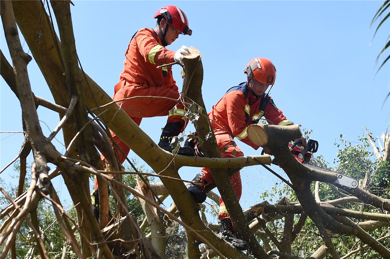 清理主干道倒木。 记者陈振园 通讯员王维爽摄