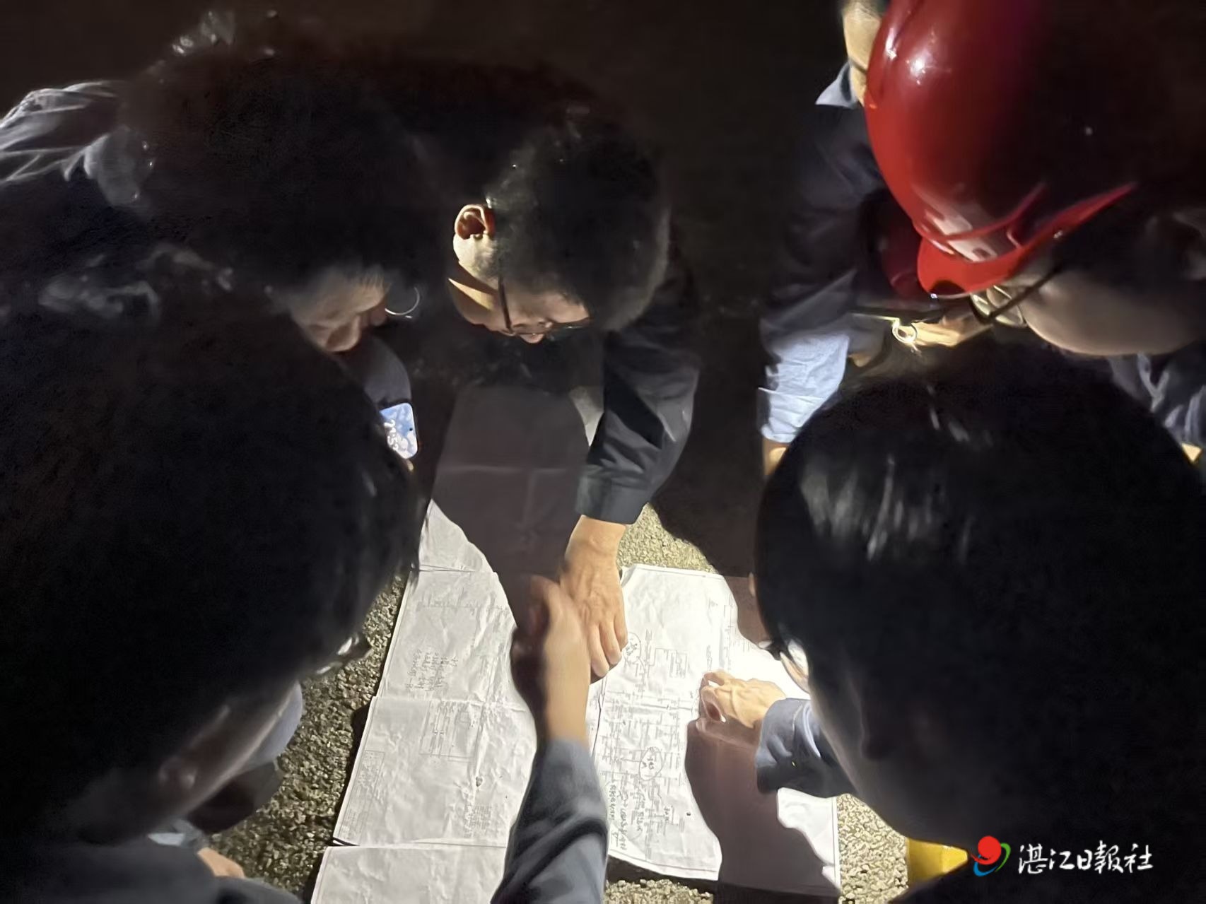 10月7日晚,南方电网深圳宝安供电局抢险队勘察现场,制定抢险方案,保障村民用电。
