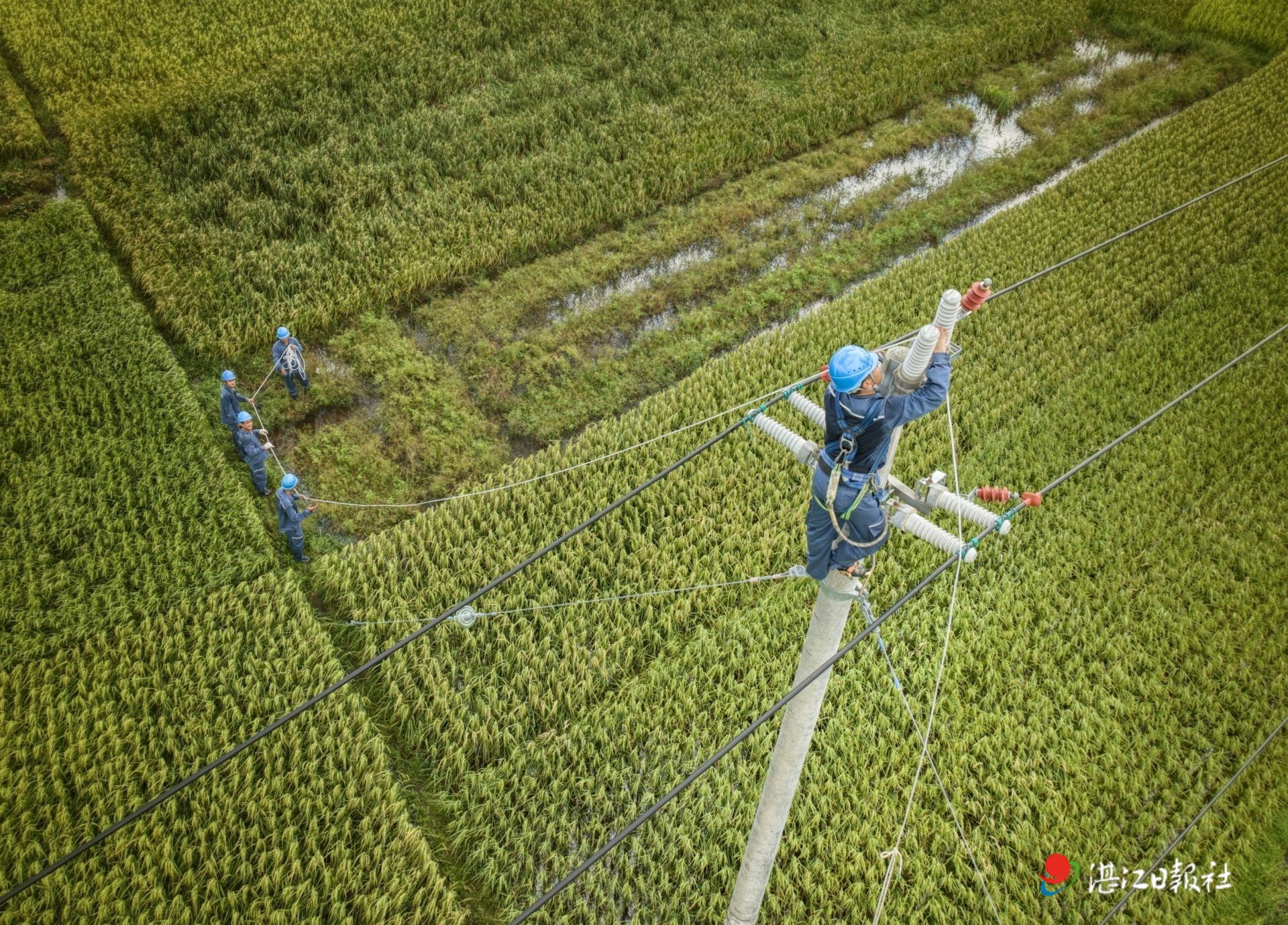 10月7日,南方电网深圳龙岗供电局抢险人员与湛江吴川黄坡所运维人员通力合作,在湛江吴川开展姚屋线的抢修复电工作。