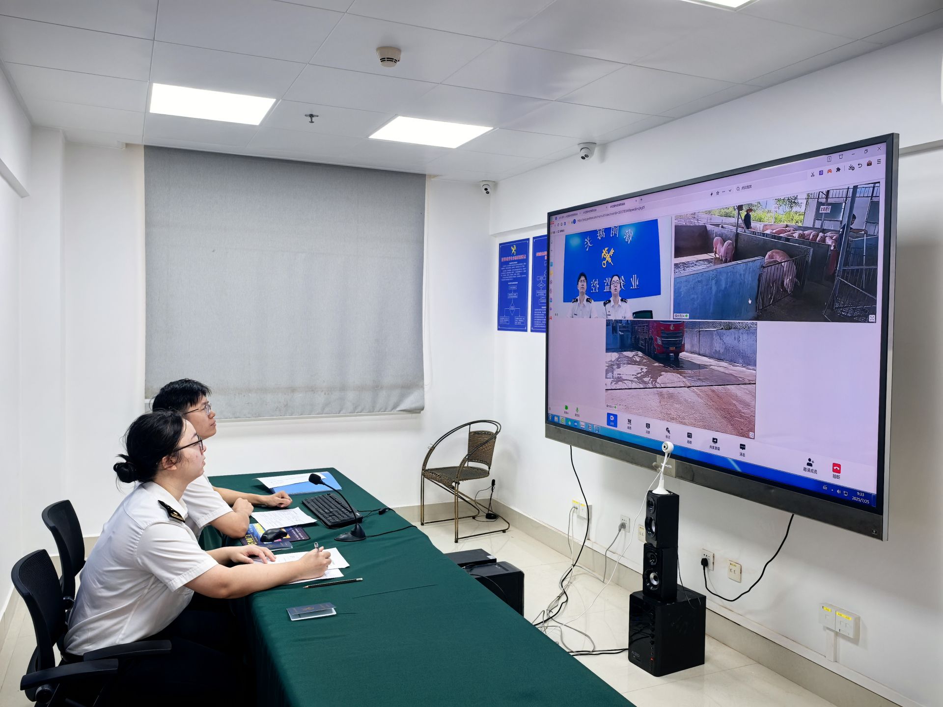 徐闻海关关员利用智慧监管模式开展供港活猪远程监管。