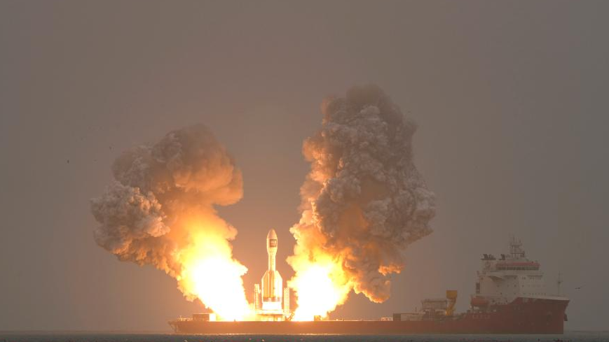 10月11日10时20分,我国太原卫星发射中心在山东海阳附近海域使用引力一号遥二运载火箭,将搭载的吉林一号宽幅02B07星、数天宇星01-02试验星顺利送入预定轨道,飞行试验任务获得圆满成功。新华社发(郭金祺 摄)