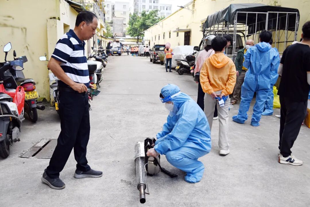 当天上午,记者在雷州城区看到,各街道、各村(社区)及各有关单位组织广大党员干部、群众和志愿者,人人手拿各种劳动工具和消毒喷杀工具,深入各自辖区清理积水、铲除杂草杂物、清理垃圾、喷杀蚊虫,重点防范基孔肯雅热等蚊媒传染病,并修复在台风中受损设施。