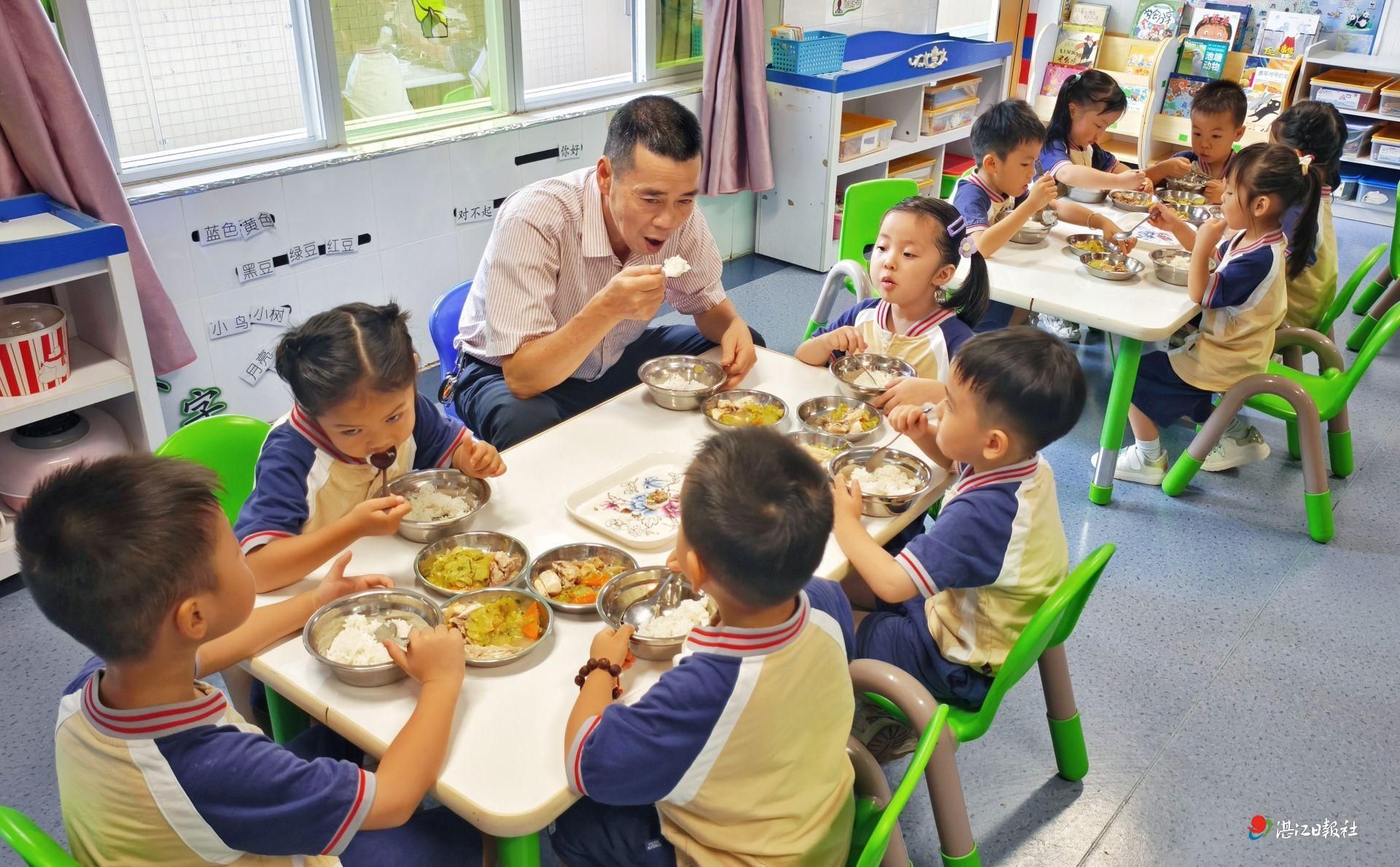 湛江市第六幼儿园,老师正在和孩子们一起进餐。