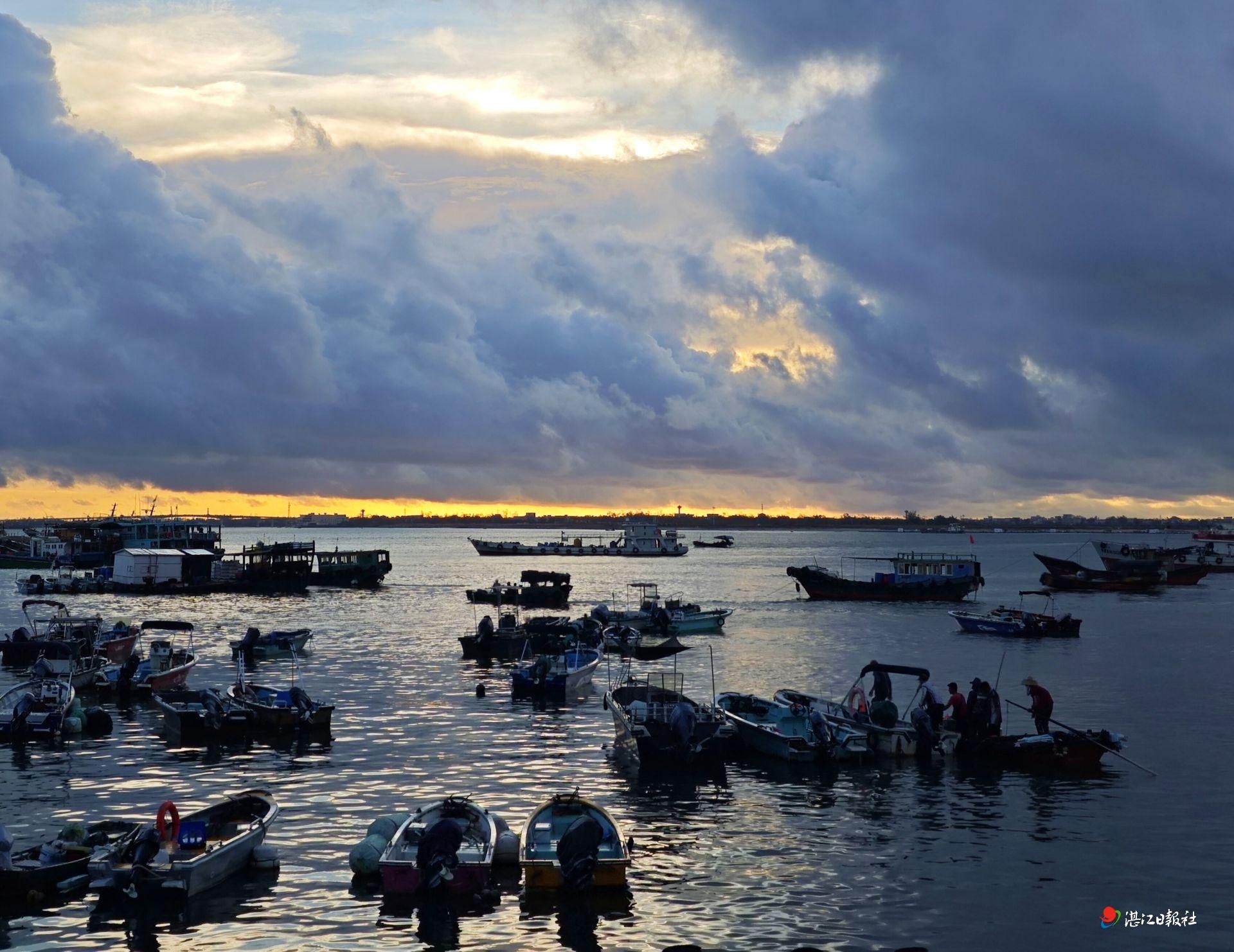 10月14日,湛江霞山渔港蓝调晨曦美得令人陶醉。