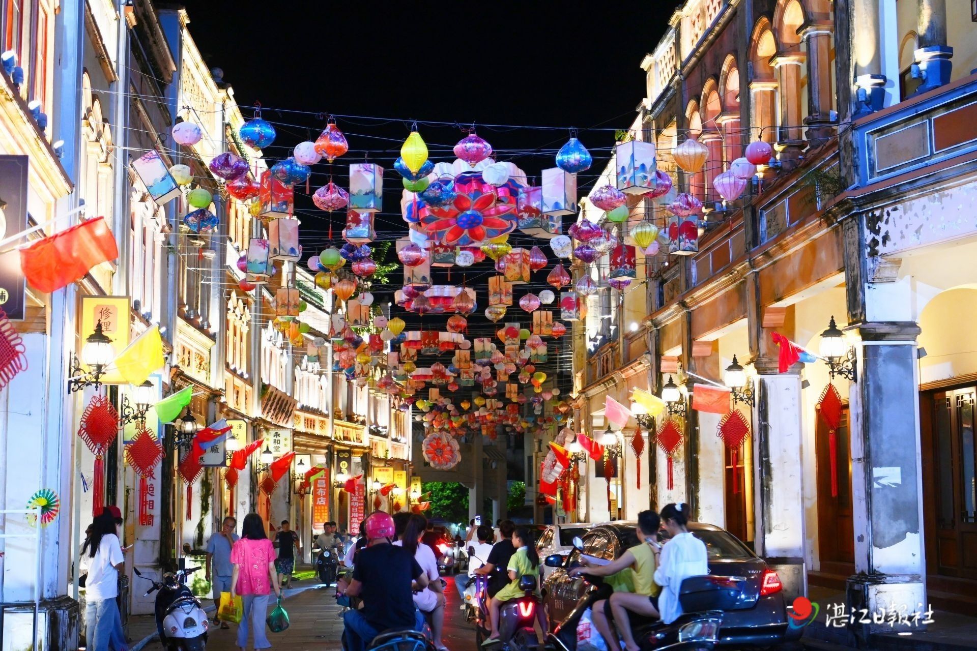 10月6日晚,雷州曲街灯火璀璨,市民欢度中秋。