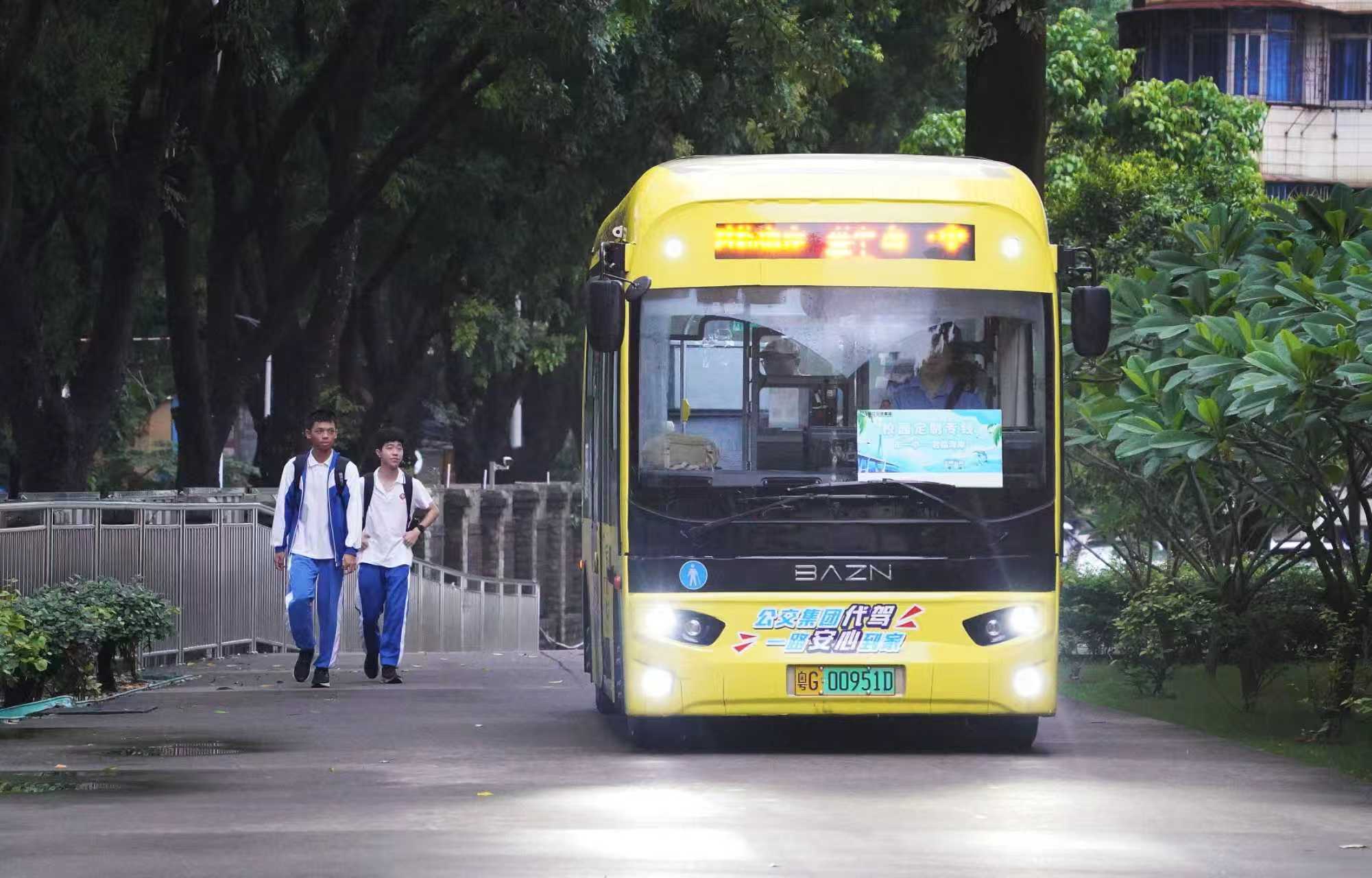 运营过程中,湛江公交集团还建立了严格的安全保障机制:所有承运车辆均定期检修维护,配备经验丰富的专职司机和跟车工作人员;跟车人员负责引导学生上下车、清点人数、维护车内秩序,全程关注学生乘车安全;车辆行驶过程中全程限速,并通过车载监控系统实时监控车内情况,让家长随时掌握孩子的出行动态。