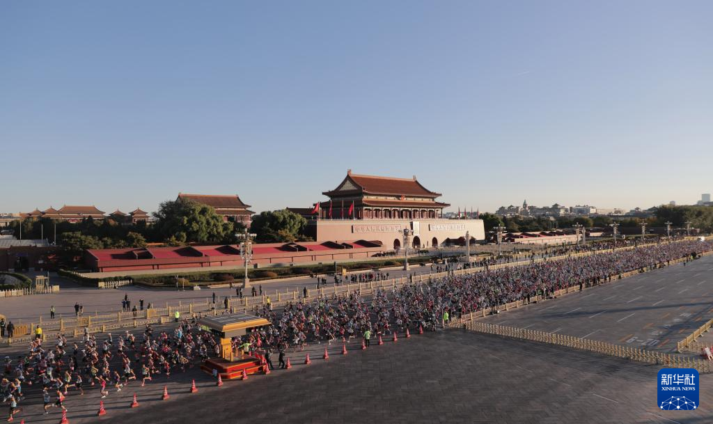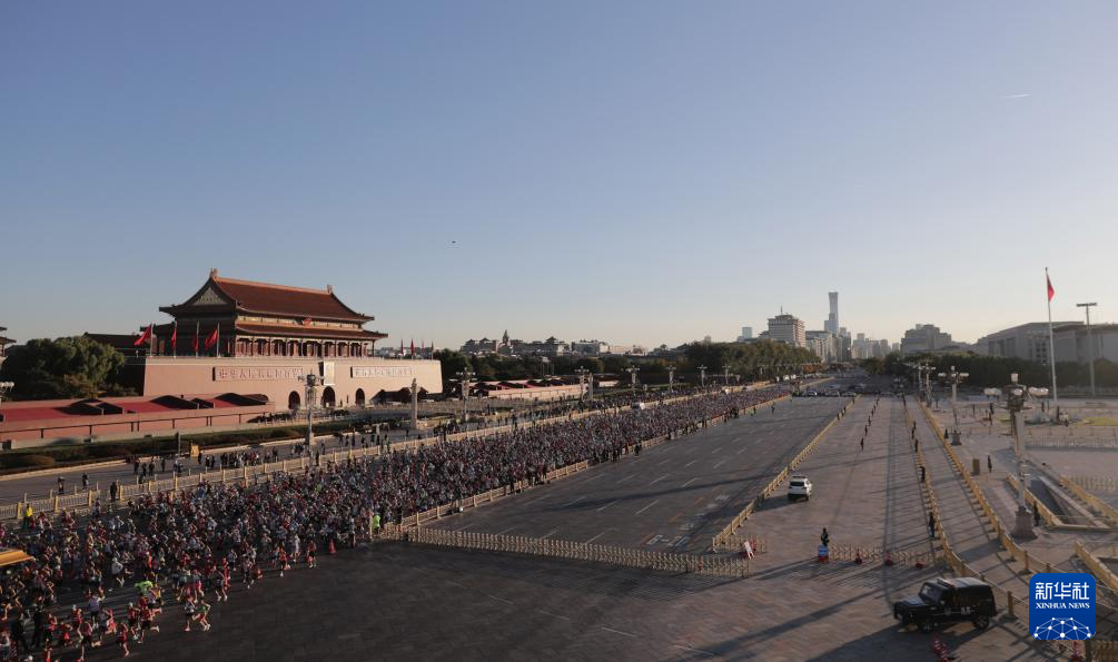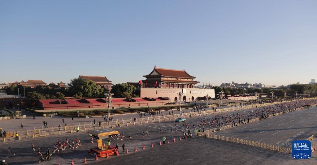 11月2日,参赛选手在比赛中经过北京天安门广场。