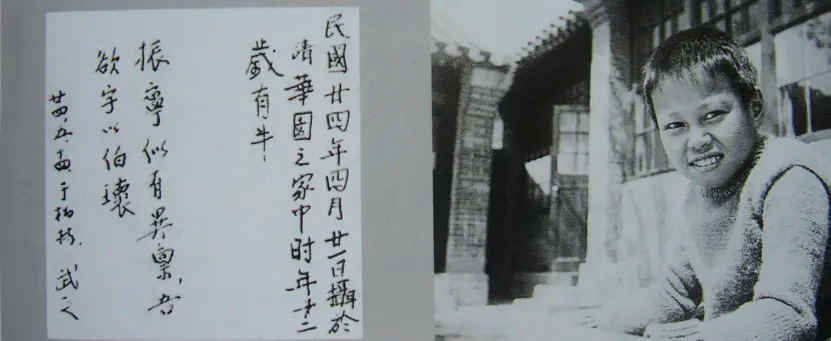 1935年杨振宁于清华园西院11号杨家院中。远在柏林念子心切的杨武之在照片背后写下:振宁似有异禀,吾欲字以伯瓌。(清华大学供图)