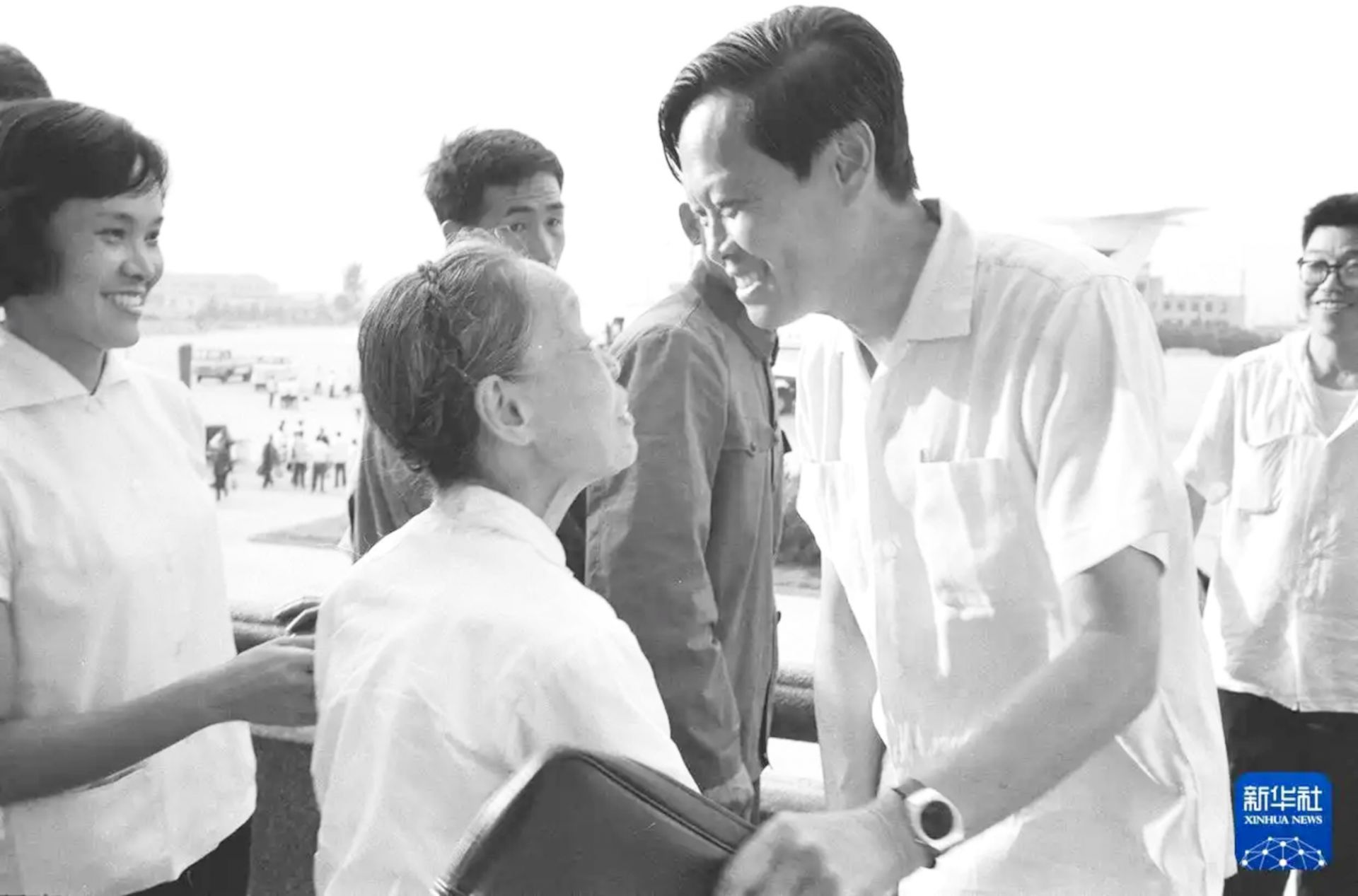 1977年,杨振宁(右)在北京与母亲罗孟华在一起。 新华社发