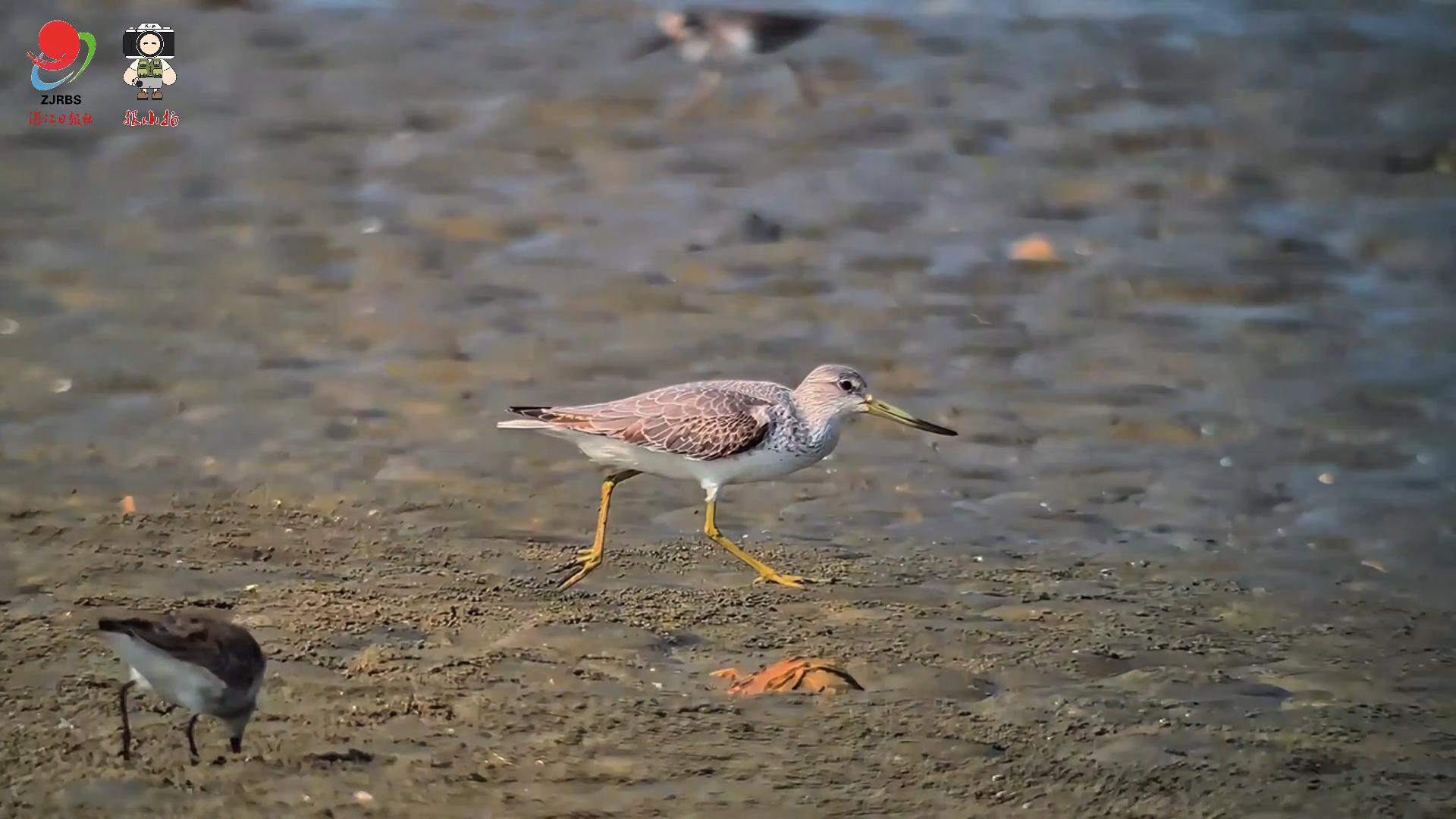 近期,湛江市爱鸟协会在吴川沙角旋滩涂遇到了“稀客”——小青脚鹬,它正欢快地觅食中。