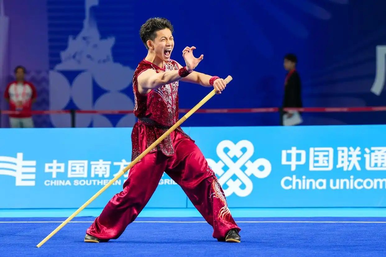 7日开赛首日进行的男子南拳南刀南棍全能项目比赛中,选手们动作如行云流水,充分展现出中华武术的深厚底蕴和扎实的武术功底、出色的赛场表现力。经过激烈角逐,最终由广东与北京体育大学联合培养的运动员李剑鸣,夺得男子南拳南刀南棍全能项目金牌。云南队选手余迪昊获得男子南拳南刀南棍全能项目银牌。代表广东队出战的湛江籍运动员杨富华夺得男子南拳南刀南棍全能项目铜牌。