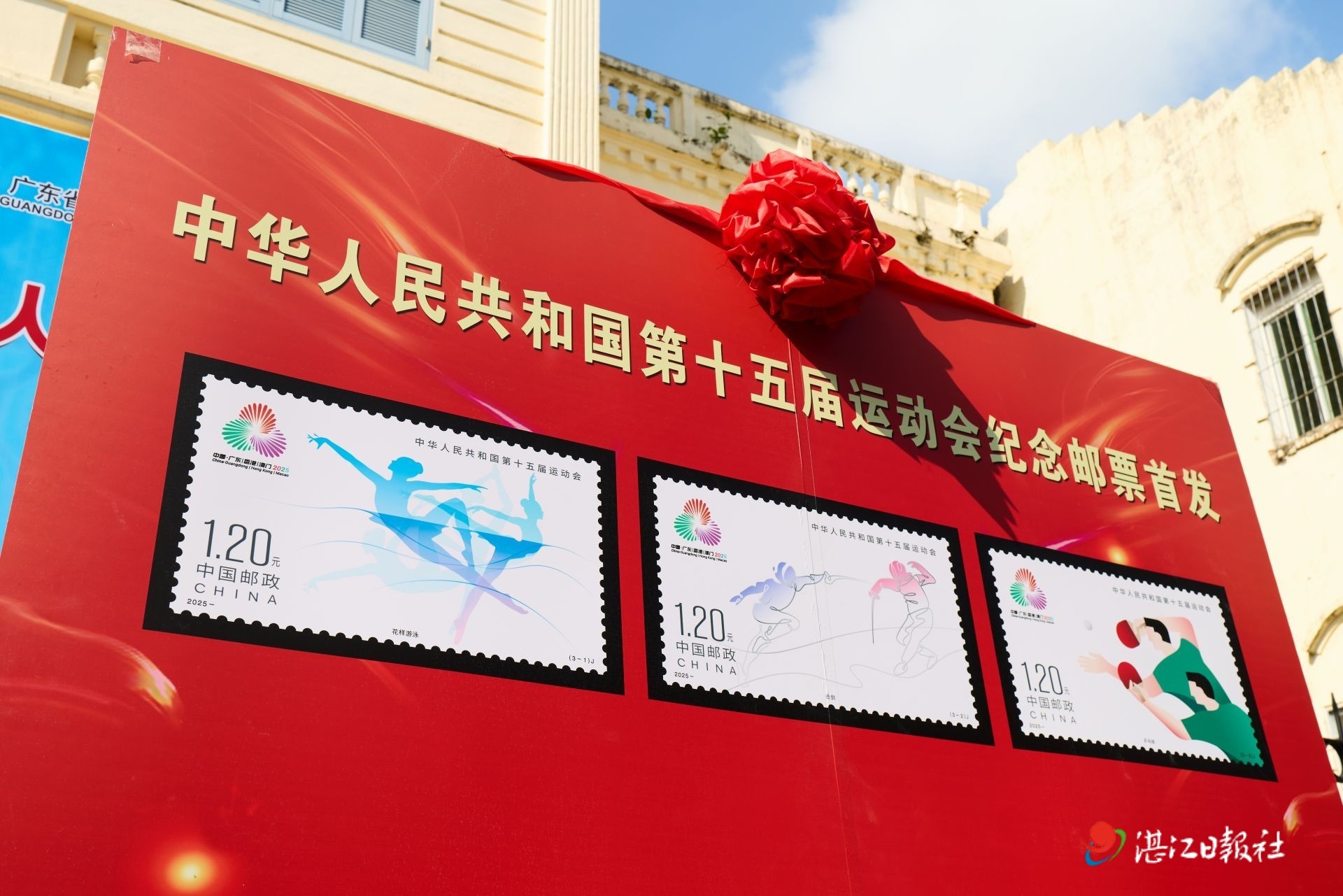 活动现场,中国邮政湛江市分公司宣读了第十五届全运会纪念邮票发行公告。本次发行的邮票一套3枚,每枚面值1.20元,图案分别为“花样游泳”“击剑”和“乒乓球”三项运动,以极简风格和现代设计语言展现运动之美。
