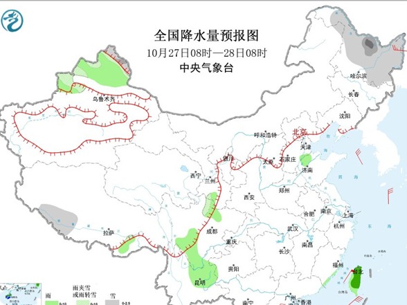 具体来看,中央气象台预计,今天,新疆北部、内蒙古东部、黑龙江东北部、西藏中东部、青海东部、甘肃南部、西北地区东北部等地部分地区有小雪或雨夹雪,其中,新疆北疆北部和北疆东部、青海东部、甘肃中南部等地部分地区有中到大雪。台湾岛大部有大到暴雨,其中,台湾岛东部和北部等地部分地区有大暴雨,台湾岛东部局地特大暴雨。