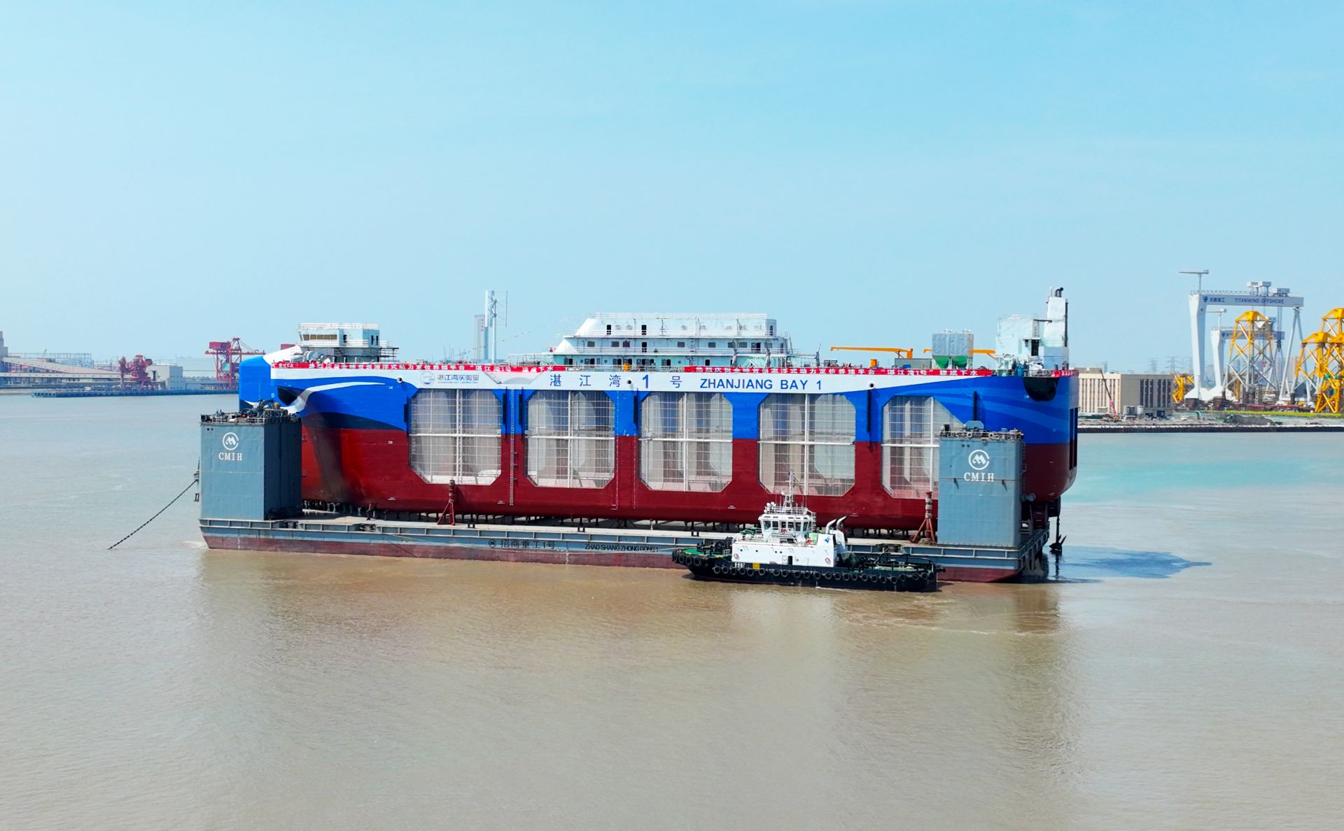 在湛江经开区招商邮轮城码头,这座被喻为“钢铁巨鲸”的养殖重器傲然矗立。