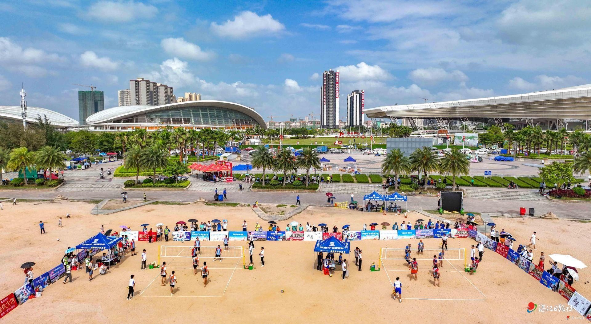 坡头区首届沙滩气排球比赛在奥体中心五环广场海滩举行。记者张锋锋 摄